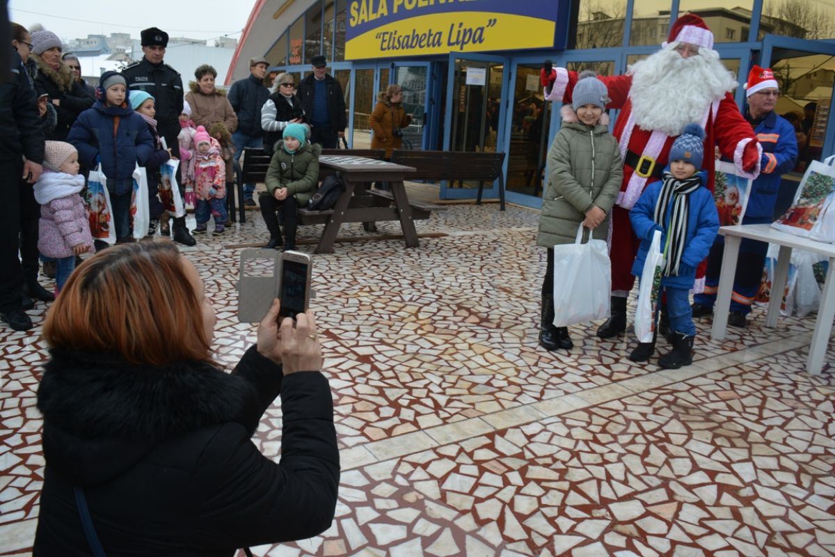 Moș Crăciun s-a fotografiat cu toți cei mici și nu i-a chinuit cu ”o poezioară” sau ”un cântecel”, întrebându-i doar - ”Cum te cheamă? Cu cine ai venit” - și altele asemenea.