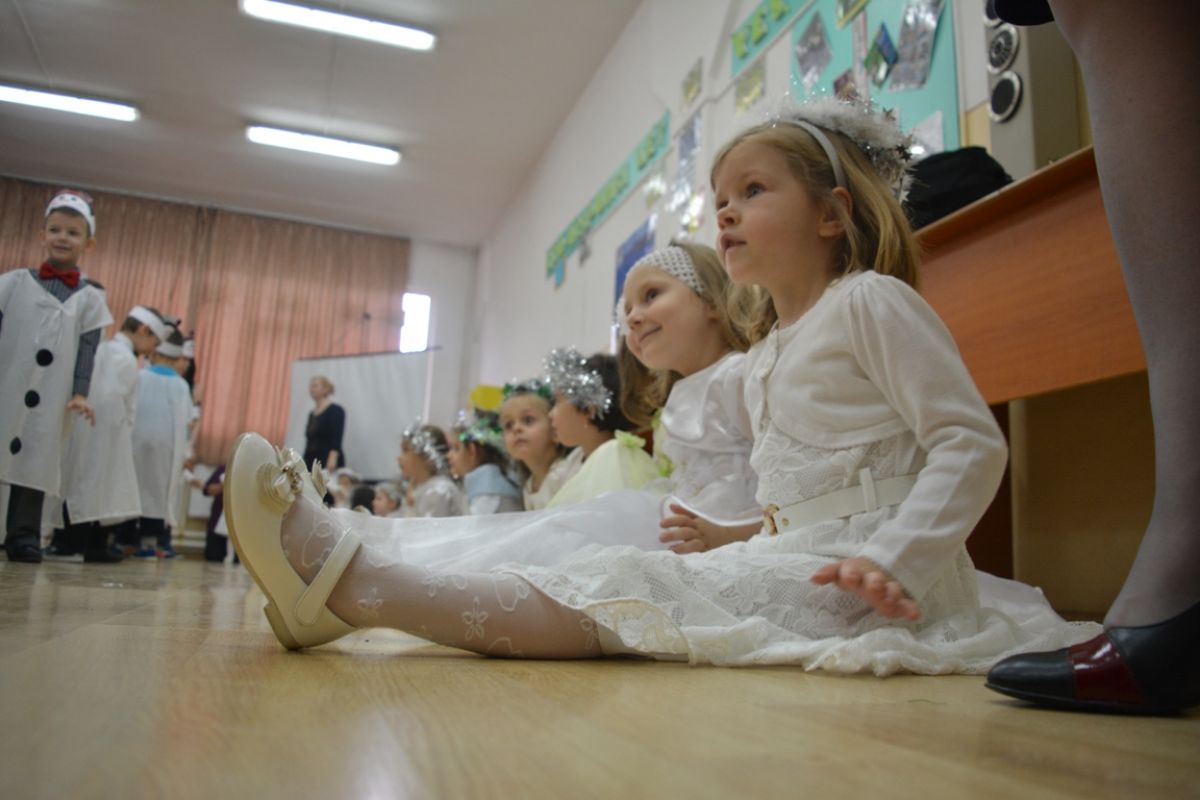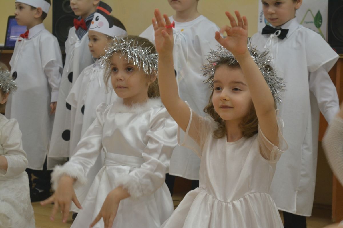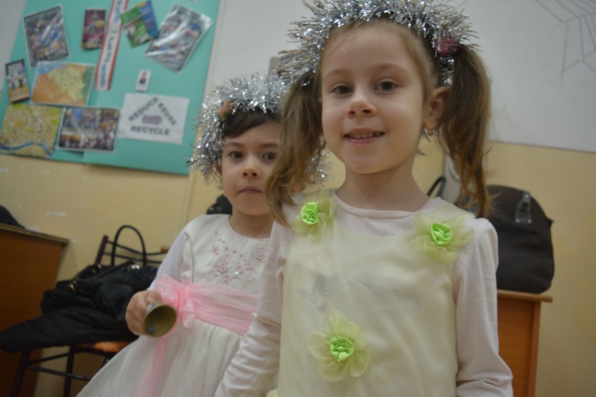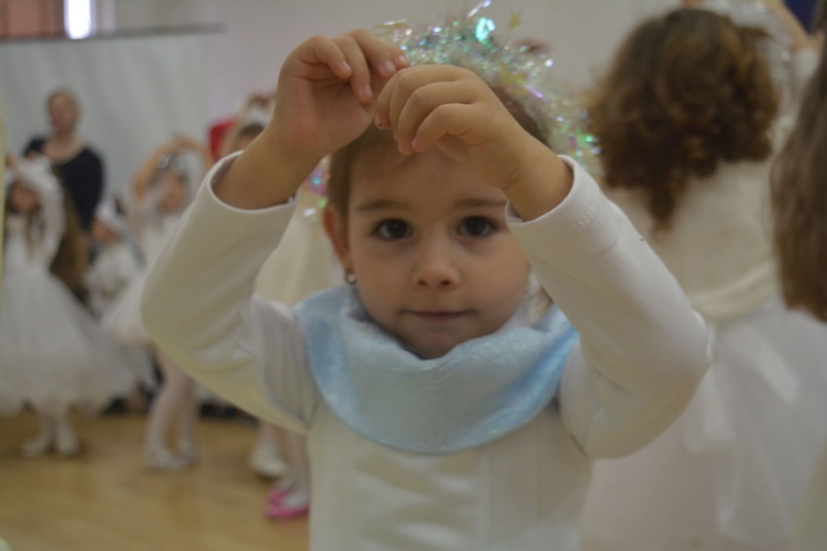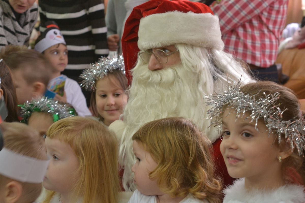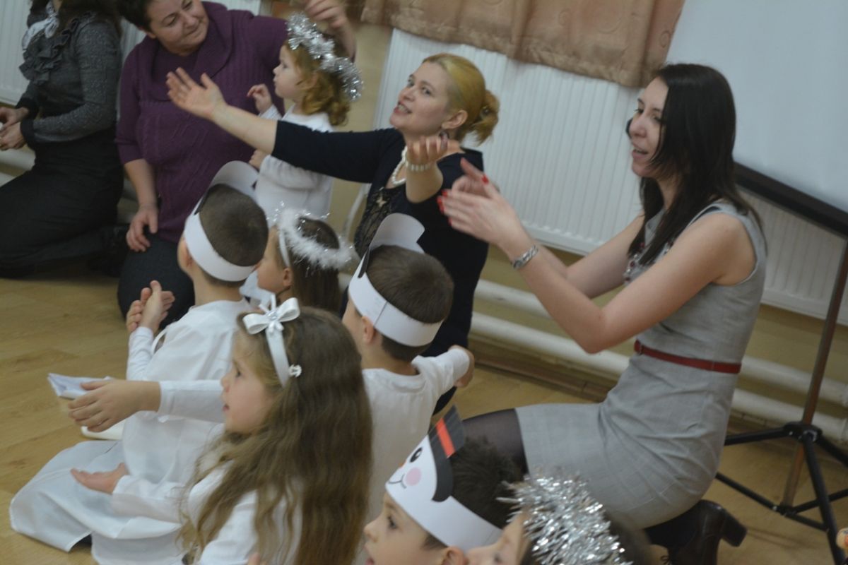 Iar micuţii l-au întâmpinat cum se cuvine. Costumaţi de sărbătoare, cu coifuri şi coroniţe pe căpşoare, au dat un spectacol care l-a făcut pe cel mai bun moş din lume să-i aplaude în mai multe rânduri, în timp ce unii părinţi, care au îngenuncheat în faţa lor pentru a-i poza şi filma, nu şi-au putut stăpâni lăcrimile. Copilaşii au cântat în mai multe limbi, au dansat, iar la final au colindat, au urat şi au sorcovit.