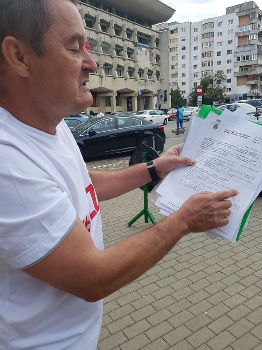 Astăzi, 1 octombrie 2019 a fost prima zi. Stelu Iacobiță va mai fi văzut și mâine dar și poimâine în fața Primăriei, cu o pancartă prin care semnalează o serie de abuzuri care ar fi făcute de șefii Direcției de Servicii Publice, Sport și Agrement (DSPSA) din cadrul Primăriei Botoșani.