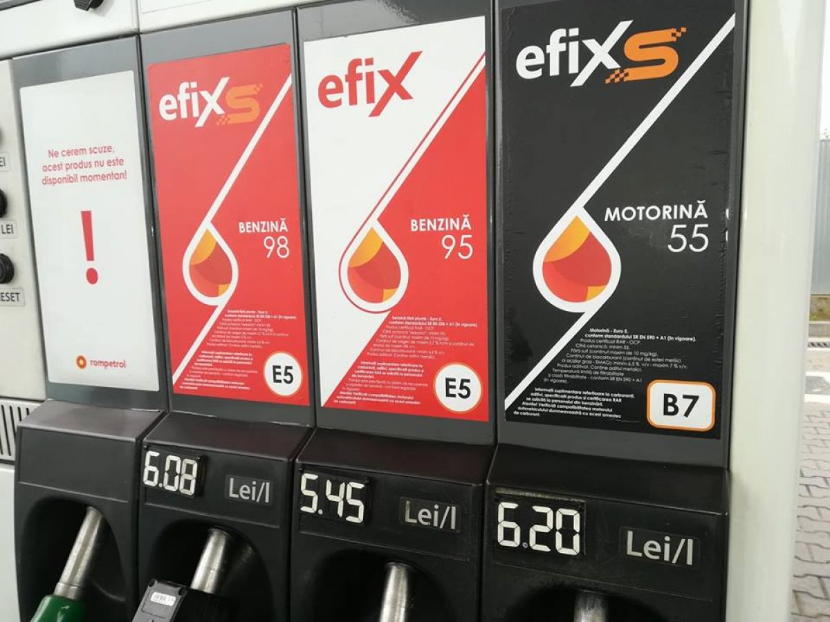 Motorină Efix 55 – 6,20 lei; Benzină Efix 98 – 6,08 lei; Benzină Efix 95 – 5,45 lei.