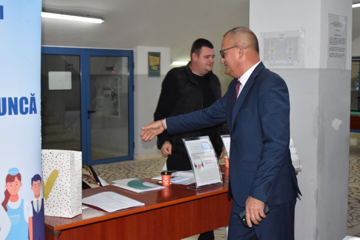 Cîțiva angajatori au luat loc la mesele din perimetrul complexului de la primul etaj având afișate locurile de muncă vacante, mare parte dintre ele pentru absolvenții de studii medii.