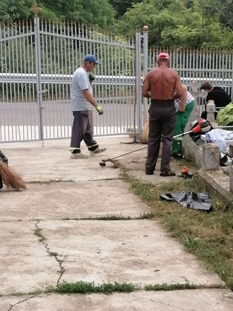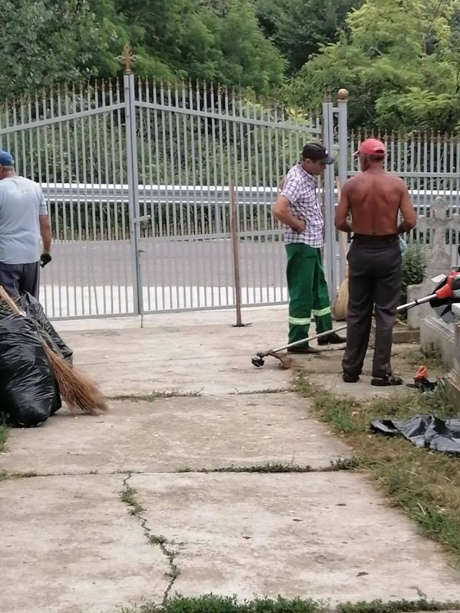 Primăria Botoșani a făcut joi publice mai multe poze realizate la cimitirul din satul Tocileni în care câțiva muncitori lucrau la îndepărtarea vegetației uscate. Edilul șef susține că respectivii sunt angajați ai SC Urban Serv SA.