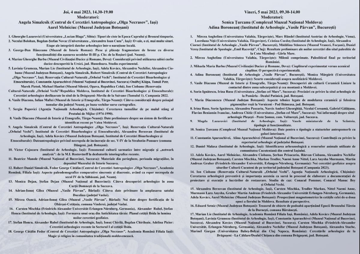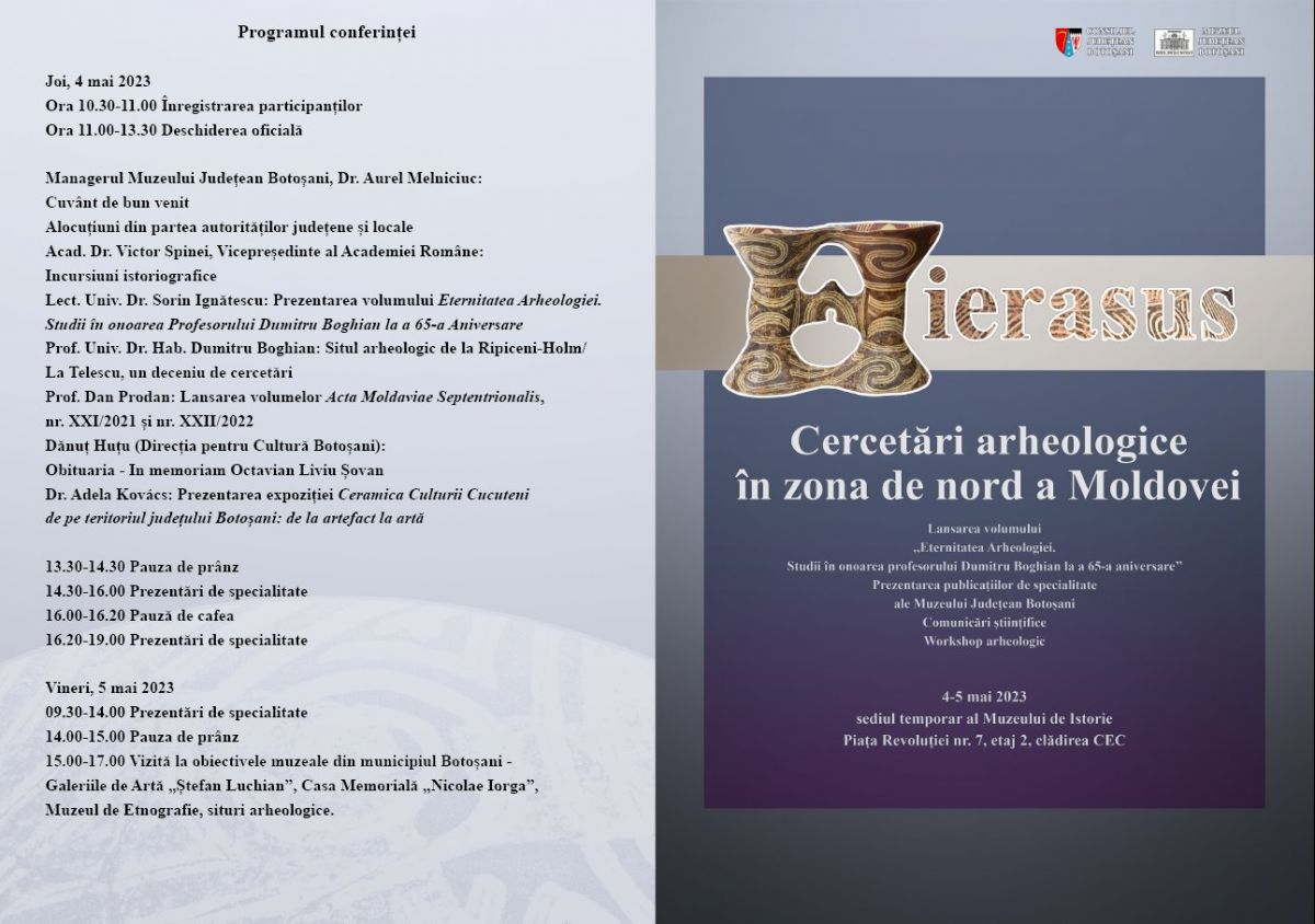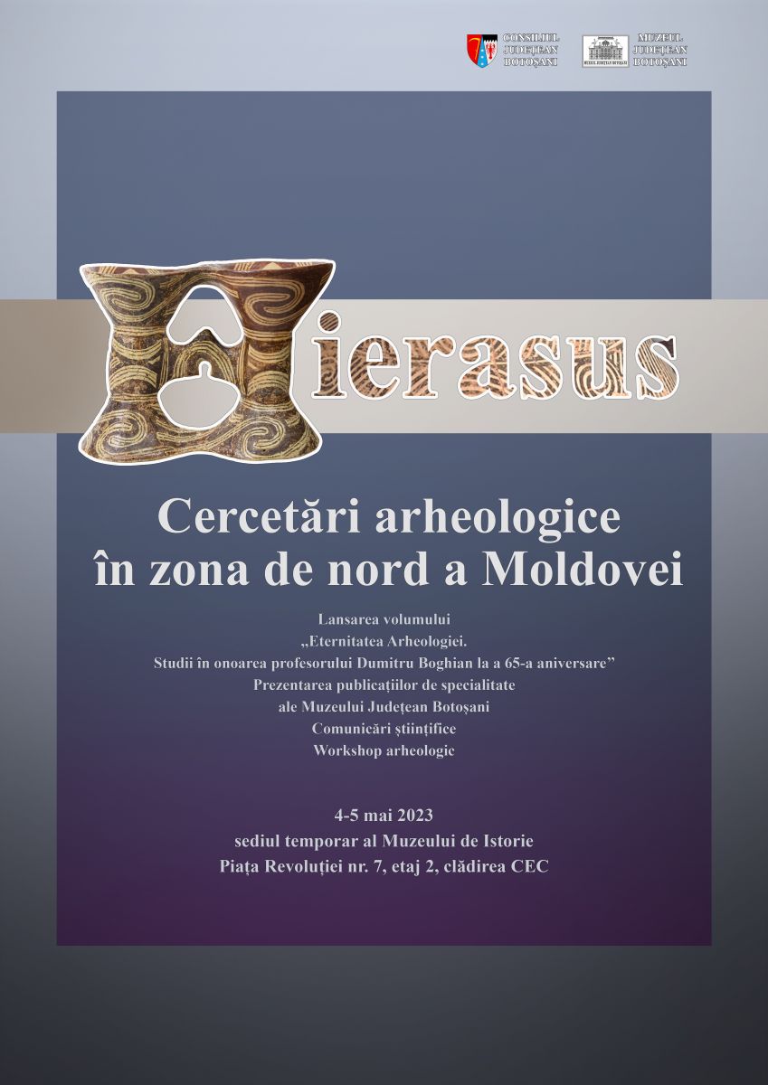 În perioada 4-5 mai 2023, Muzeul Județean Botoșani, Secția Istorie-Arheologie, organizează conferința de specialitate „Hierasus – Cercetări arheologice în zona de nord a Moldovei”.