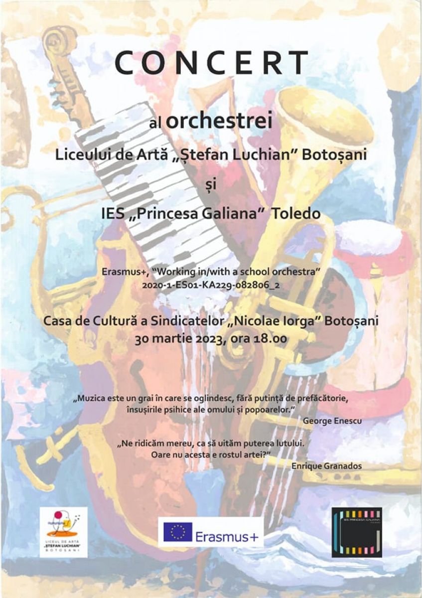 Joi, 30 martie, cu Concertul orchestrei Liceul de Artă "Ştefan Luchian" Botoşani şi IES Princesa Galiana, pe scena Casei de Cultură a Sindicatelor Botoşani, proiectul şi-a atins toate obiectivele propuse.