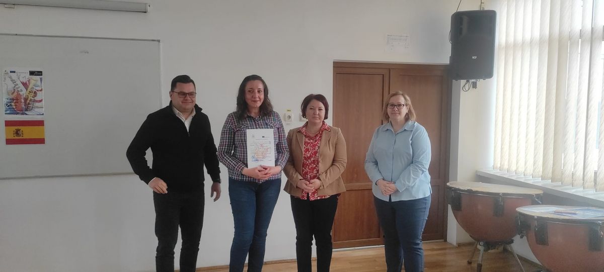 În săptămâna 27-31 martie 2023, Liceul de Artă a găzduit ultima mobilitate din cadrul proiectului Erasmus+, “Working in/with a school orchestra” 2020-1-ES01-KA229-082806_2 ”, proiect de parteneriat strategic care constă în schimbul de bune practici și colaborare, concentrându-se pe munca în jurul orchestrei școlii, pregătirea și desfășurarea diferitelor spectacole muzicale, o activitate care pentru ambele licee este un spațiu ideal pentru munca în echipă.