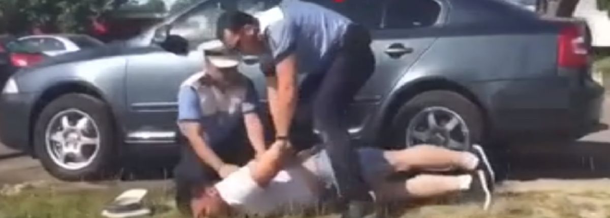 Scene desprinse parcă din filmele de acţiune la Piteşti, acolo unde un taximetrist a fost pus la pământ de poliţişti şi încătuşat în plină stradă, sub privirile uimite ale trecătorilor.