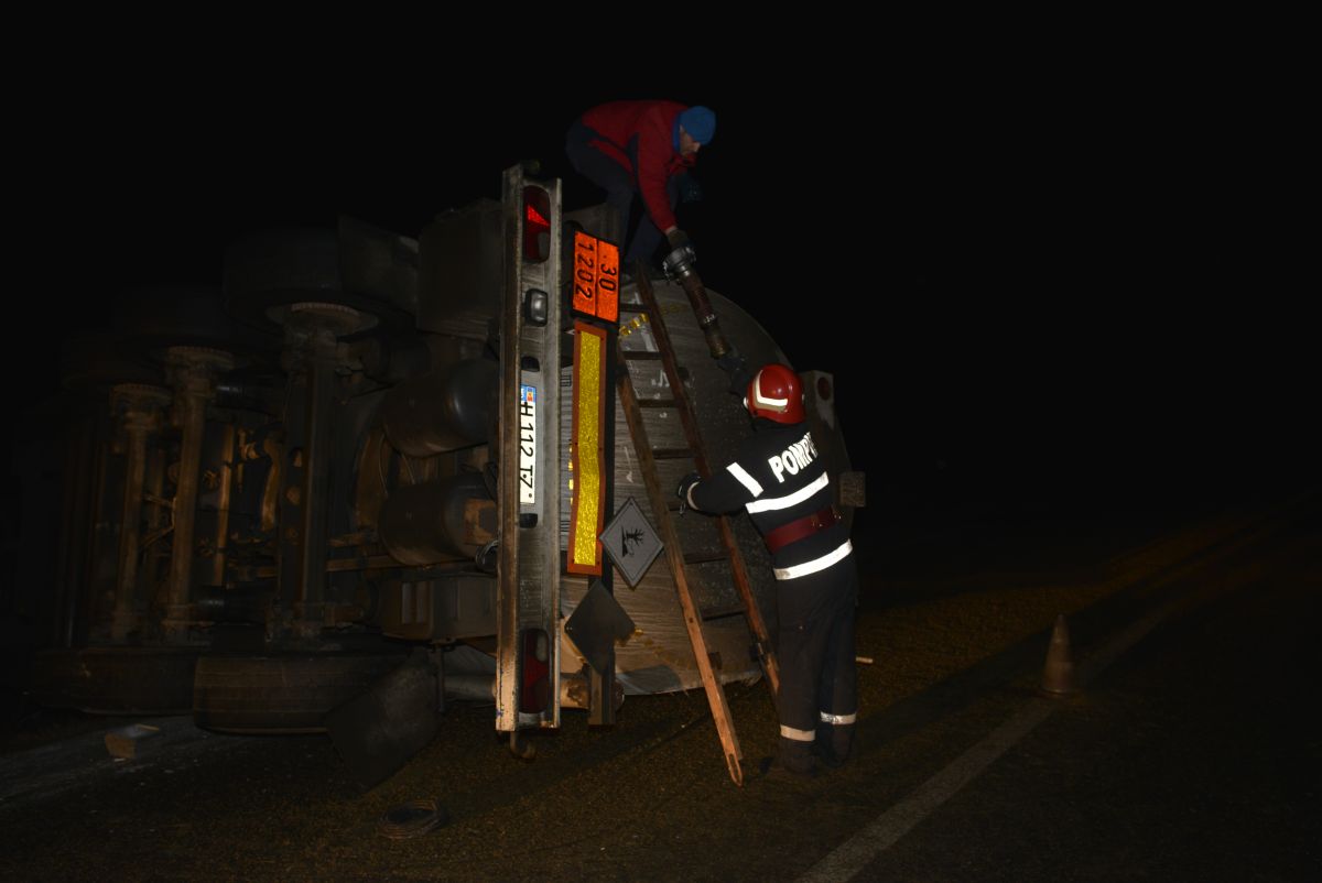 Grav accident rutier în judeţul Vaslui, localitatea Creţeşti de Jos, unde mai multe echipaje ale pompierilor din Vaslui au fost nevoite să intervină pentru a stinge incendiul provocat în urma răsturnării unei cisterne de mare tonaj .
