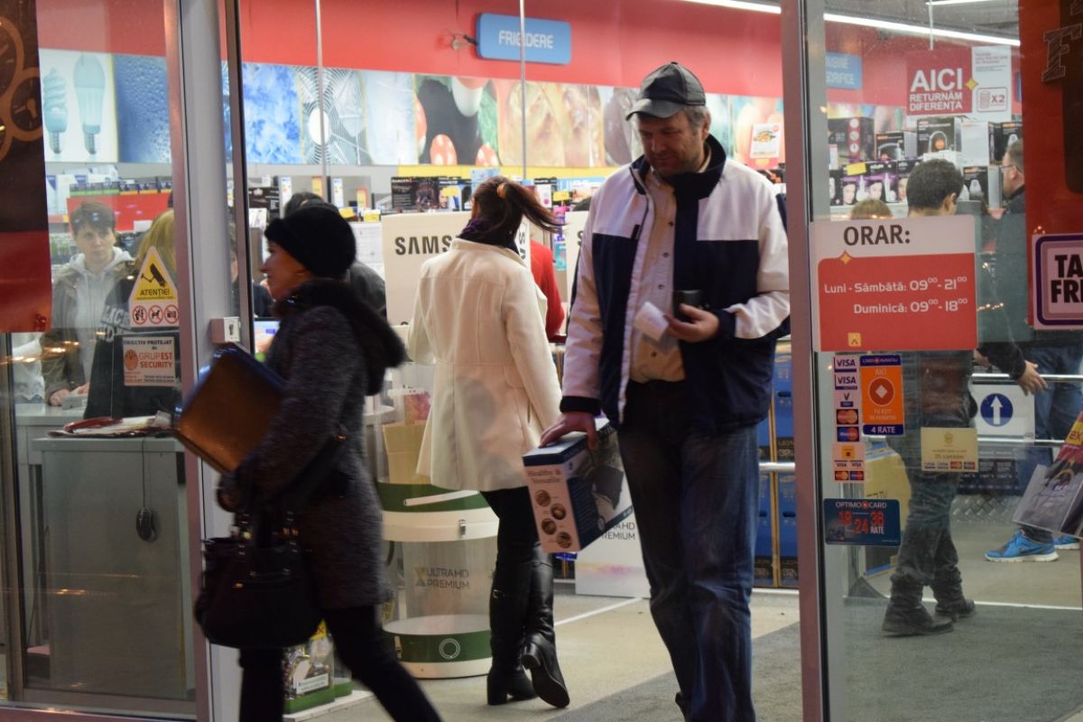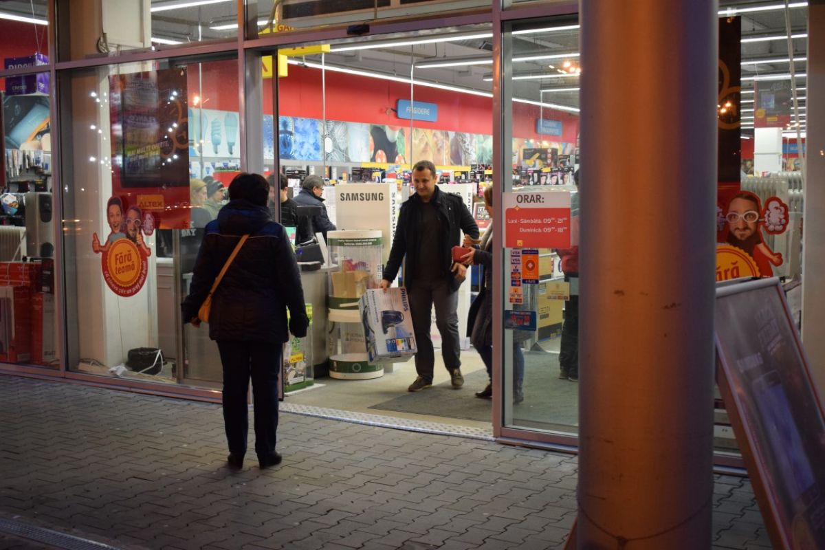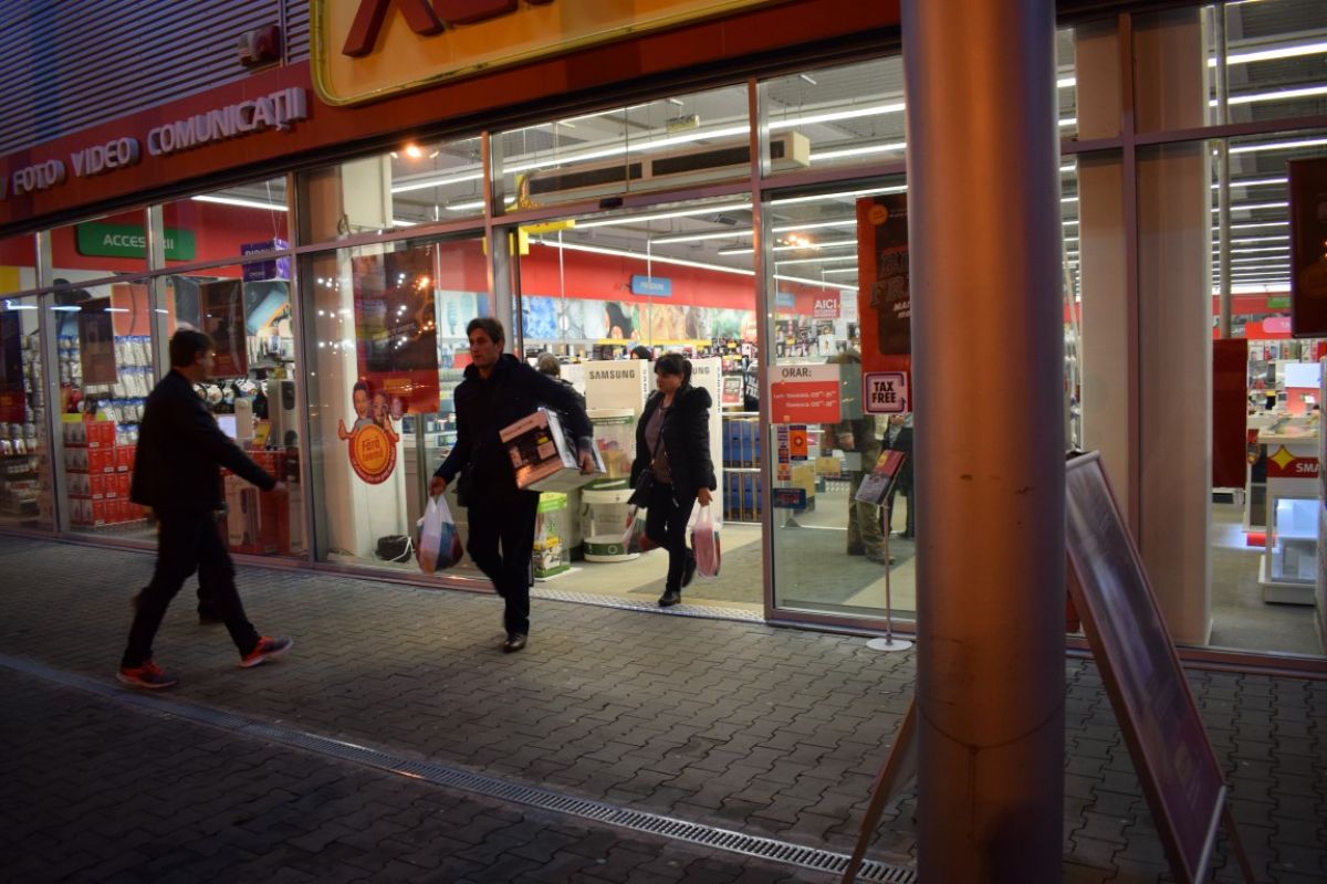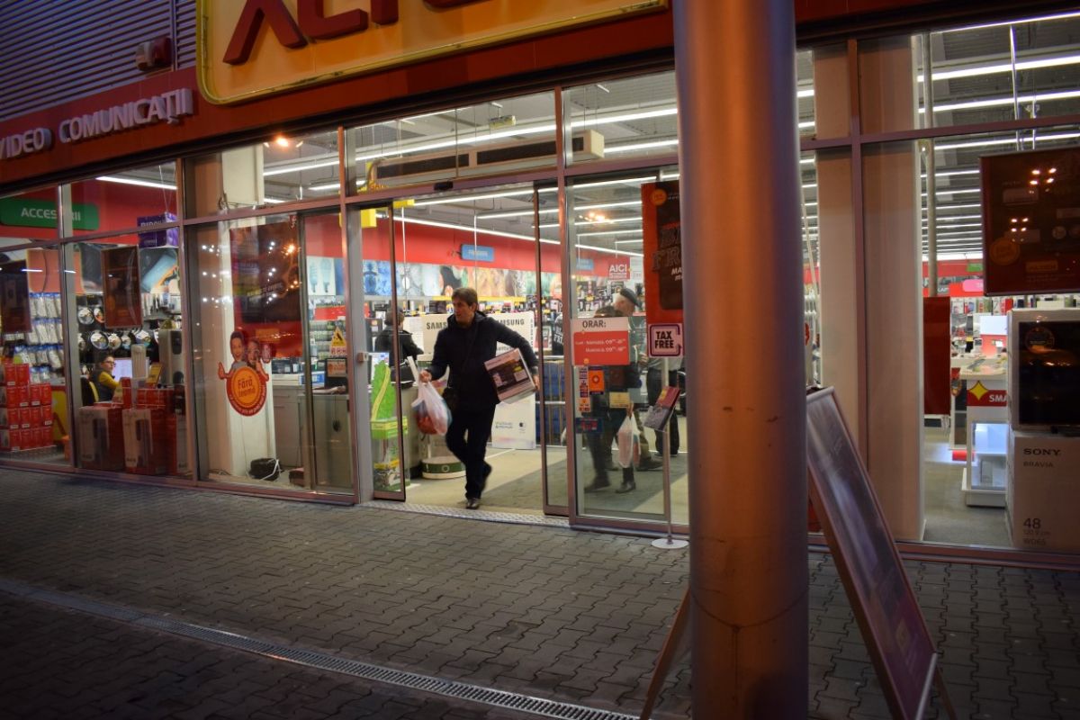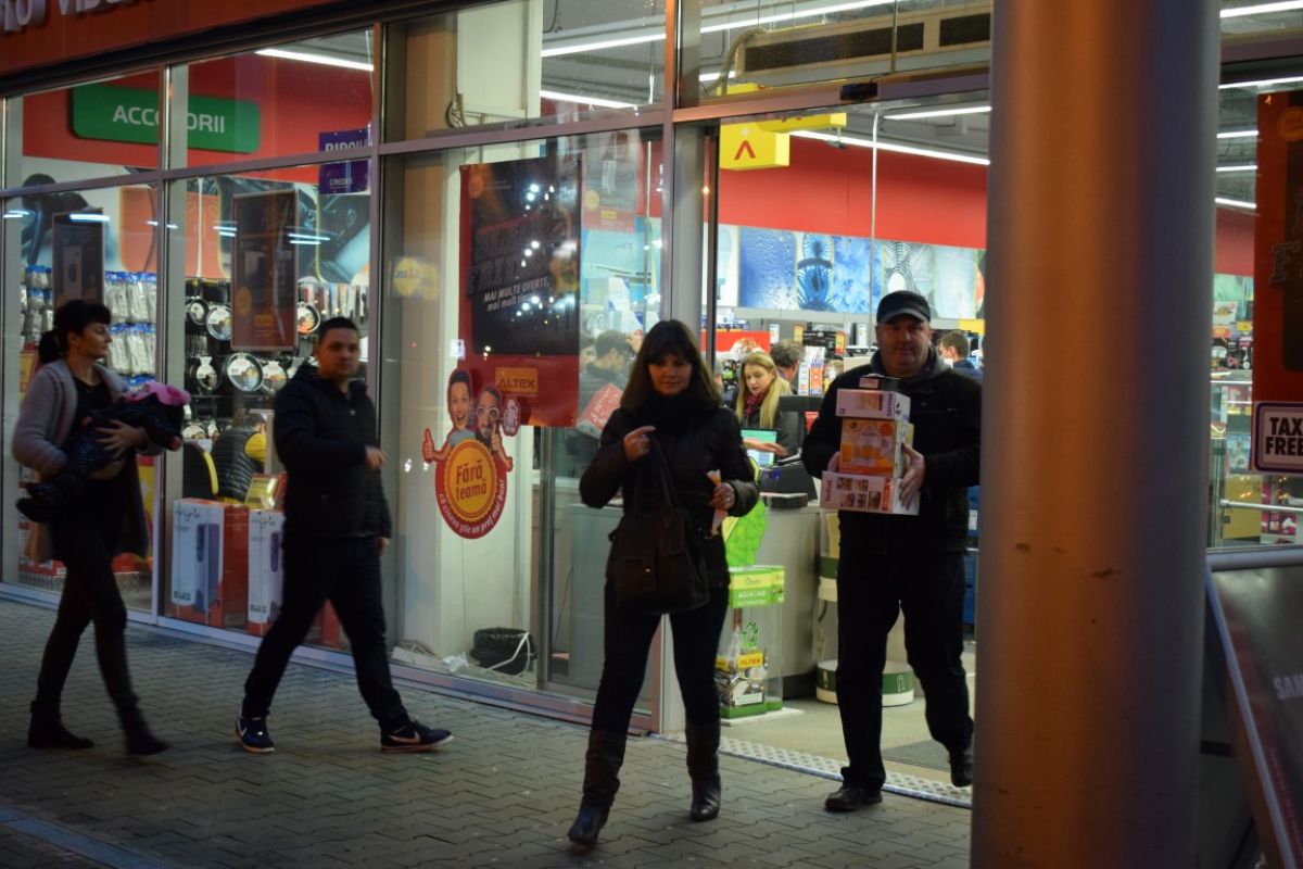 Oamenii încă se plimbau frenetic printre rafturi și discutau între ei reducerile. Iar valul de cumpărători care se scurgea printre uși cu diverse cutii în brațe, mai mici sau mai mari, era continuu.