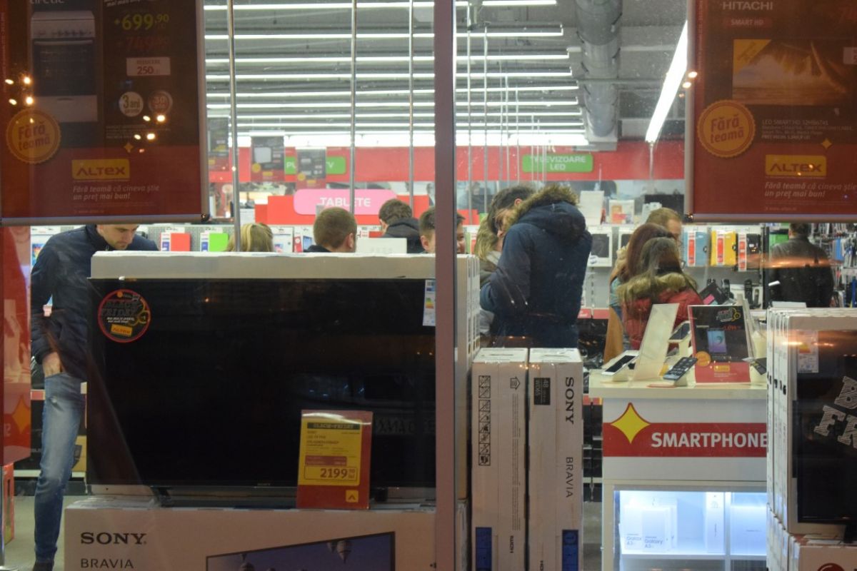 S-au vândut azi foarte bine televizoarele. Și telefoanele. Au urmat mașinile de spălat și electrocasnicele gen storcătoare de fructe, prăjitoare de pâine sau cuptoarele cu microunde. Și aspiratoare sau aragaze sau plite electrice.