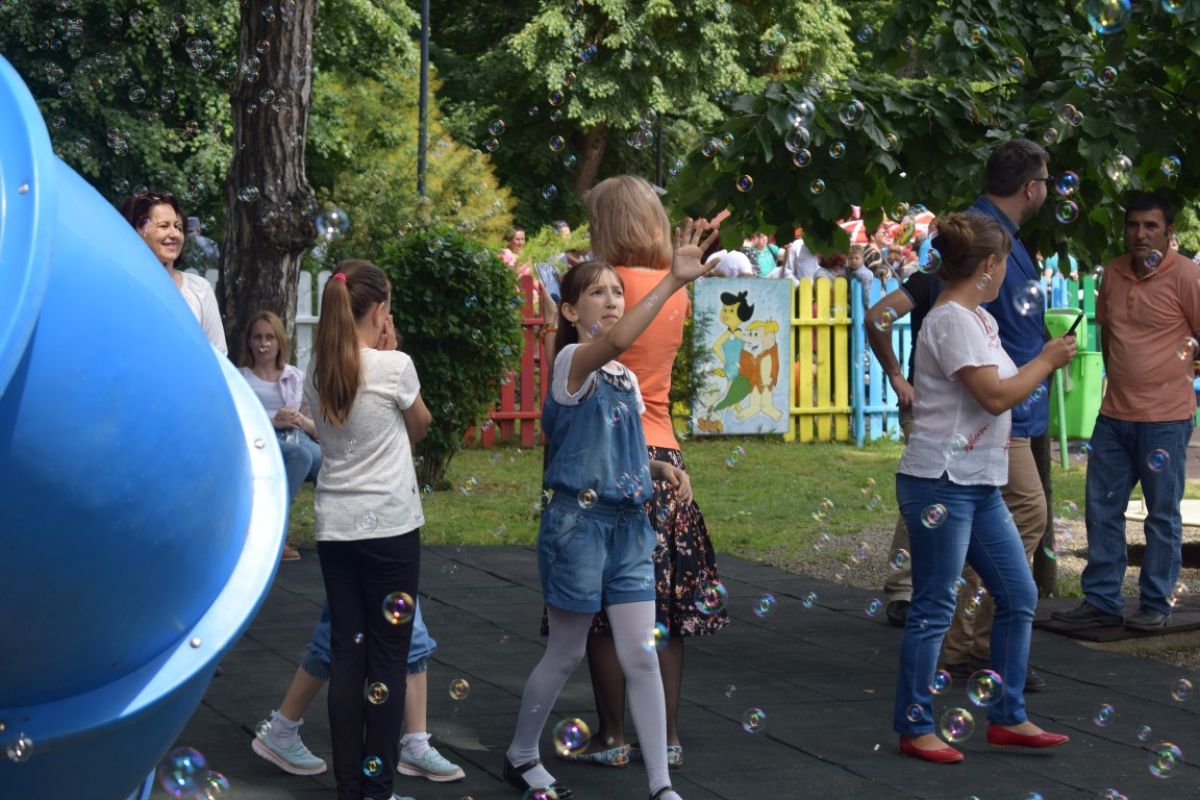 500 de copii primesc la ieșire câte un suculeț, o bomboană și câte un balon. De asemenea, la terenul de joacă construit pe zona fostelor sere, accesul este permis pe întreaga zi.
