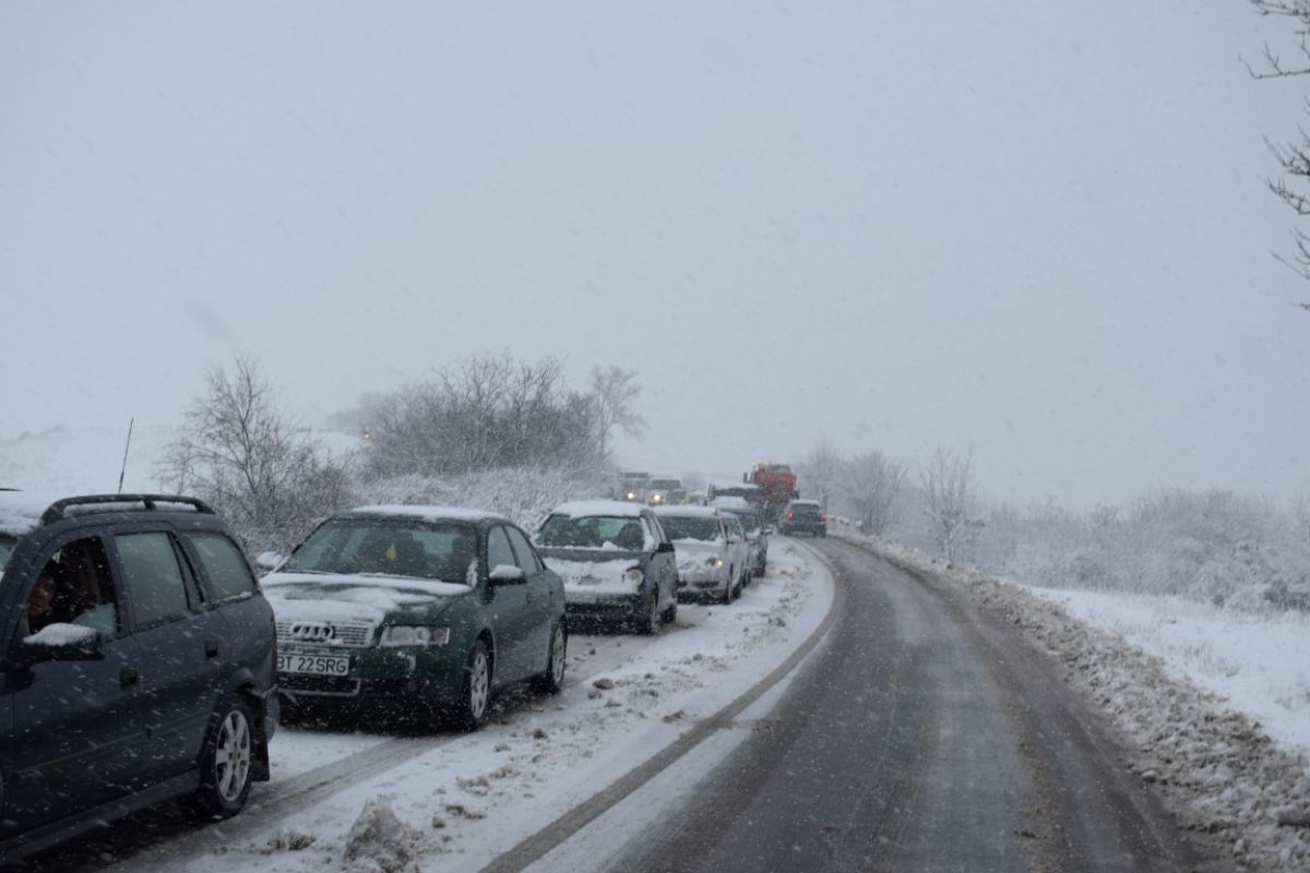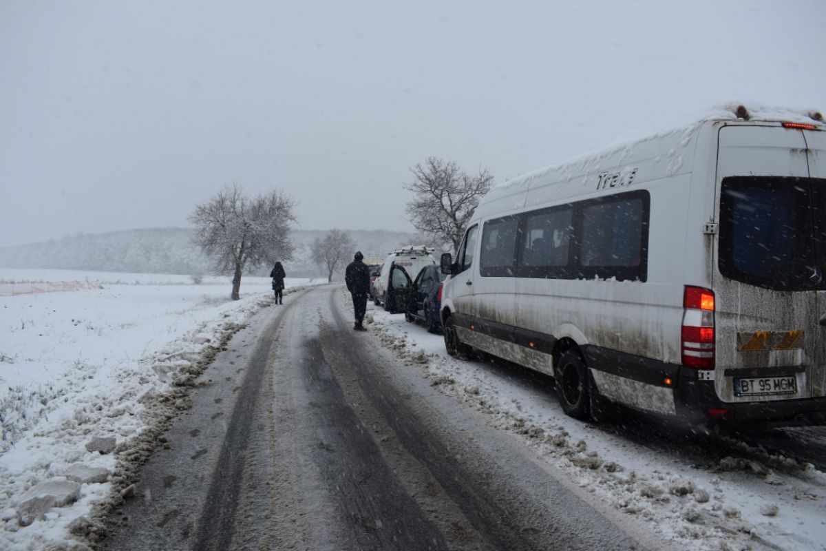 Tot pe drumul spre Dorohoi, trei tiruri au rămas blocate pe marginea drumului, pe carosabil fiind zăpadă frământată, extrem de periculoasă. Utilajele treceau la intervale de 30 de minute, însă în urmă ninsoarea se depunea înapoi, în interval scurt de timp.