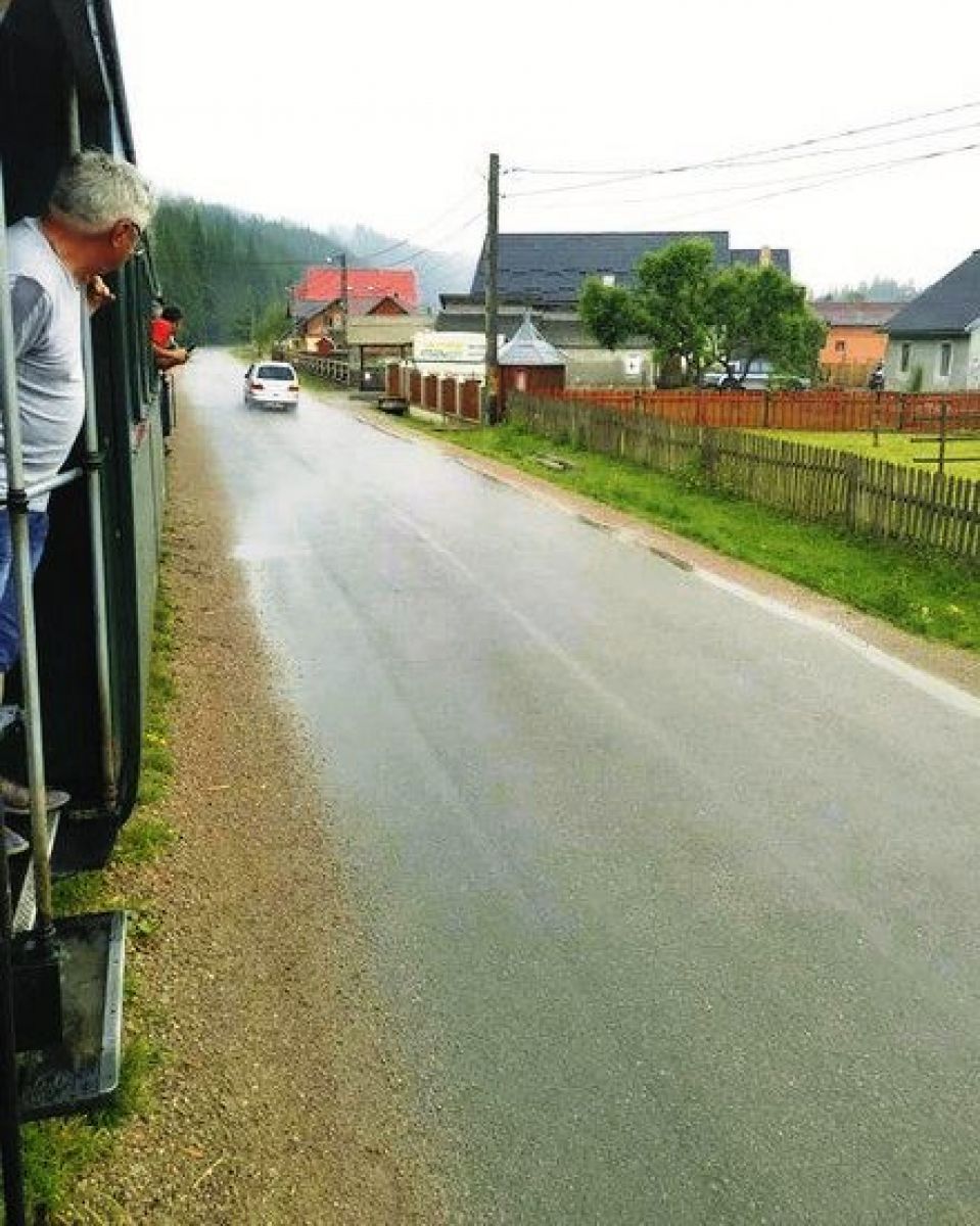 Pe de altă parte, Tcaciuc a condus maşina doar câteva sute de metri în faţa trenului şi a parcat din nou pe marginea căii ferate, blocând din nou mocăniţa cu şase vagoane.