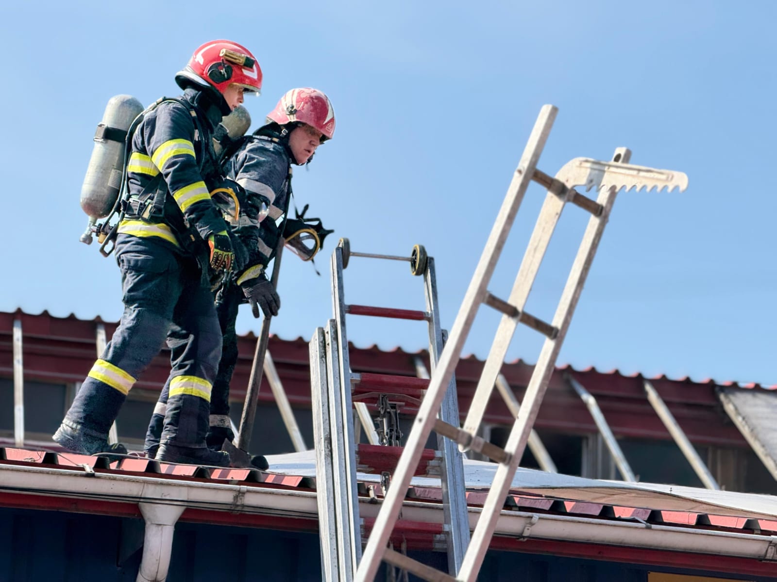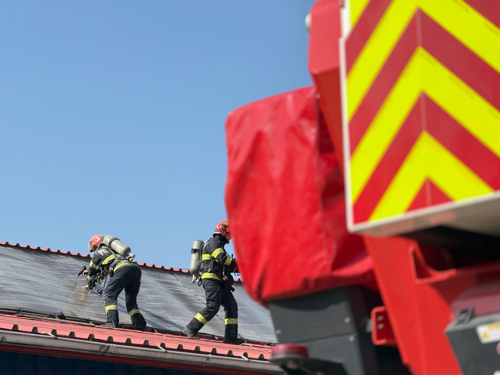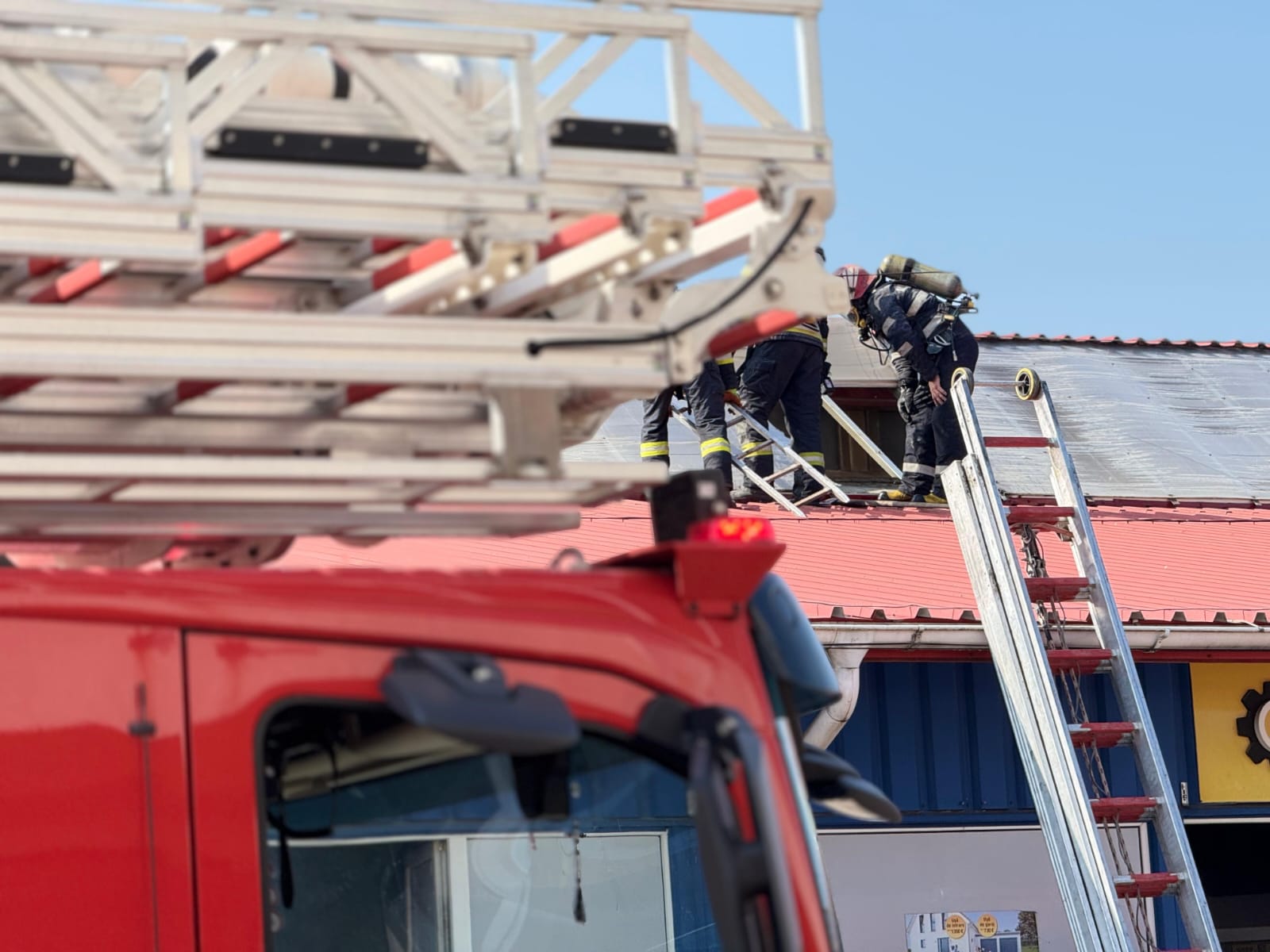 Aceștia au constatat faptul că ardeau cabluri electrice și piese din cauciuc folosite în activitatea de montaj uși secționale și automatizări porți. Pompierii au acționat rapid astfel încât flăcările să nu se extindă la bunurile din interior, dar și la acoperișul clădirii.