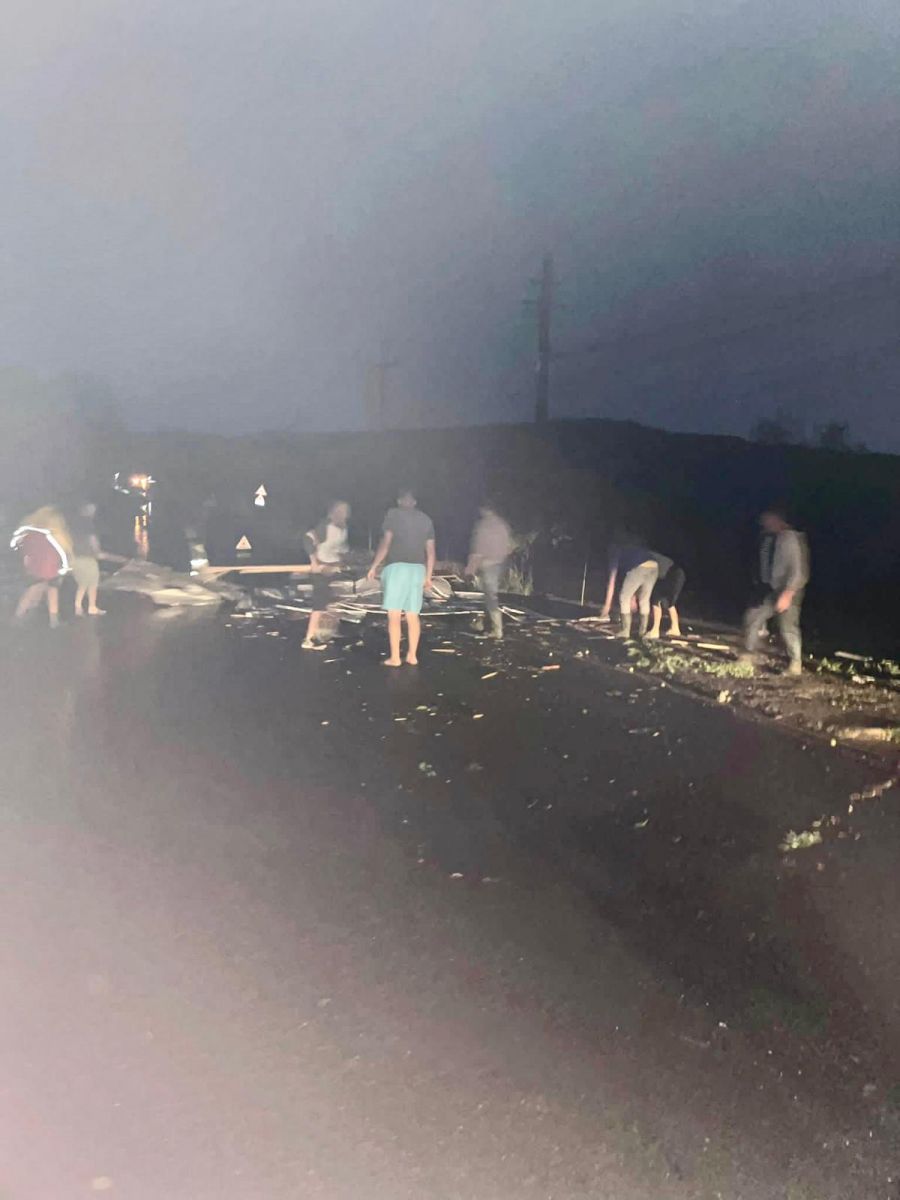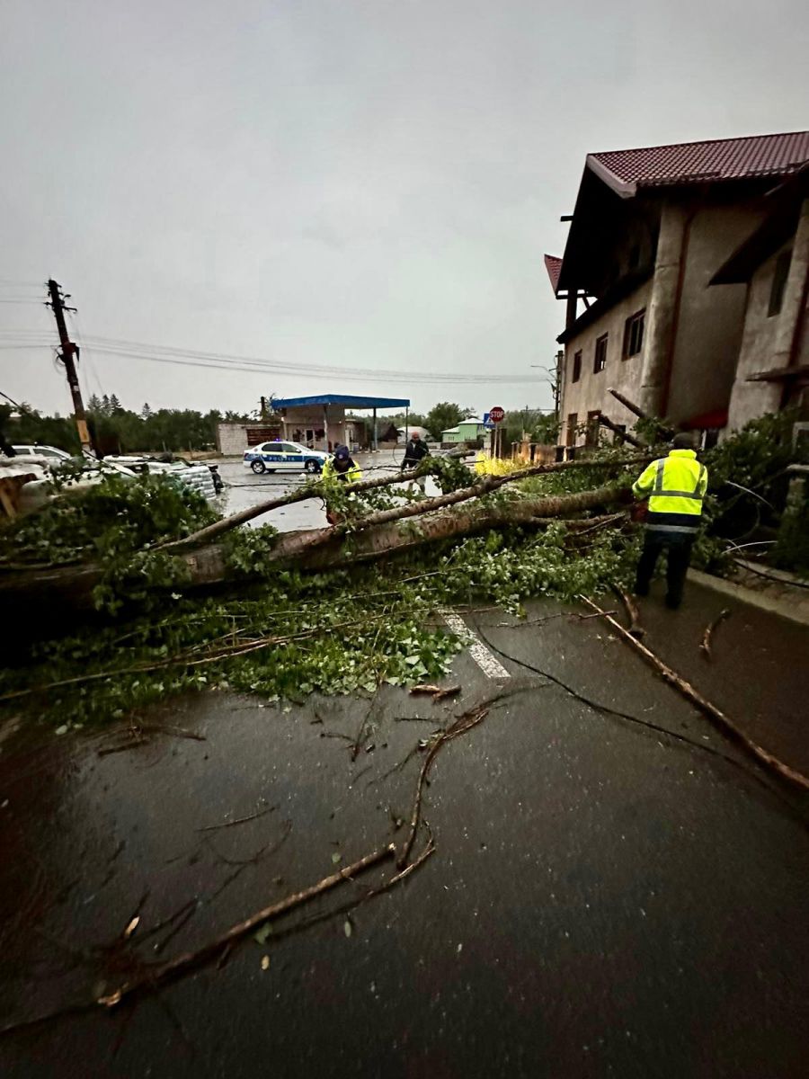 Aceștia au mai intervenit și pentru degajarea unor arbori căzuți pe partea carosabilă pe Drumul Județean 298.