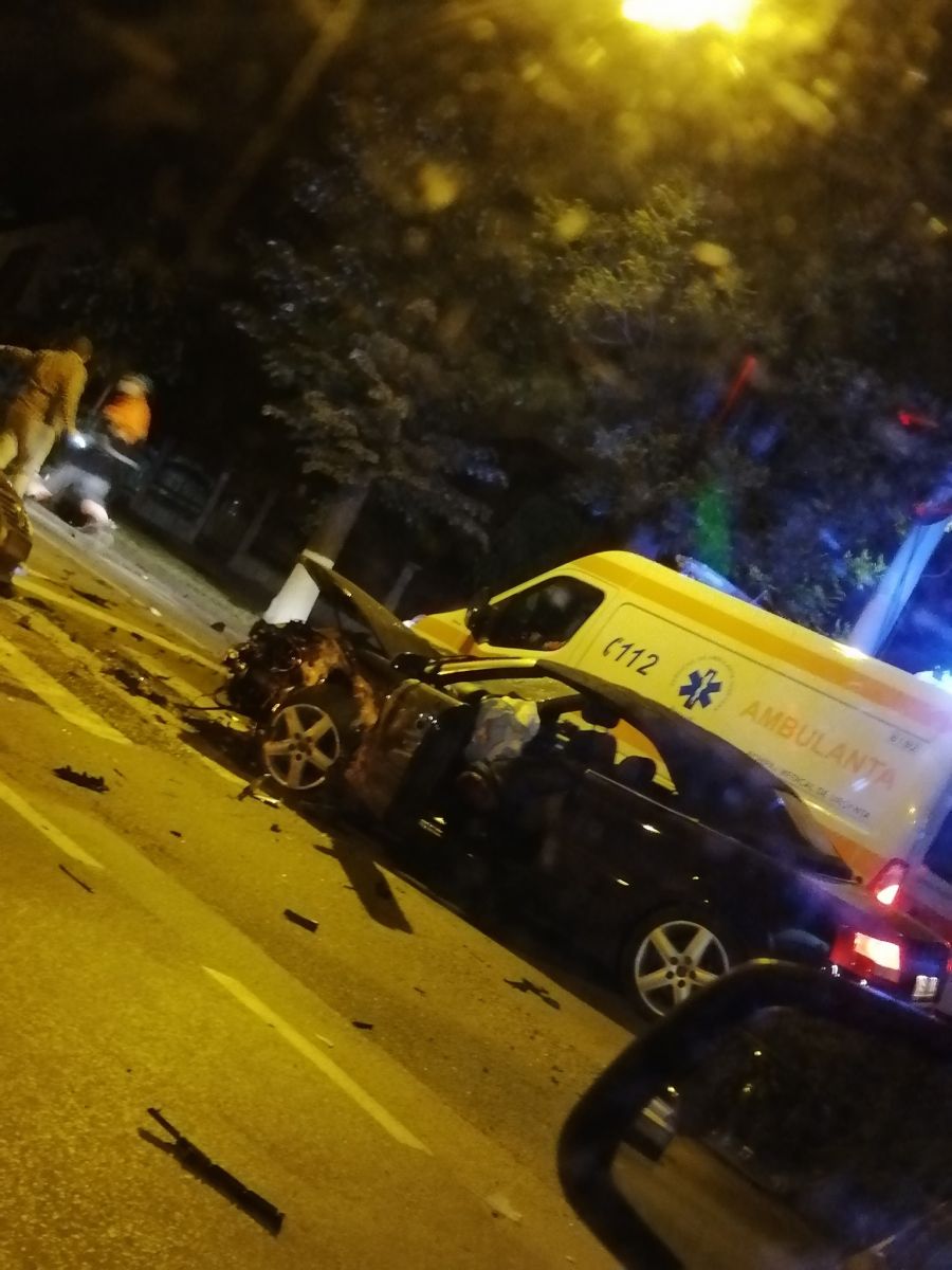 Din primele informații de la locul accidentului sunt implicate trei autoturisme și mai multe victime. Două persoane au rămas încarcerate în urma impactului extrem de puternic.