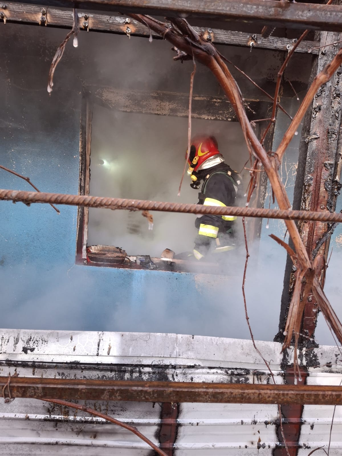 Evenimentul s-a produs în această dimineață. Când a izbucnit incendiu, femeia, în vârstă de 67 de ani, era în locuiță. A reușit să iasă din interior și a sunat după ajutor.