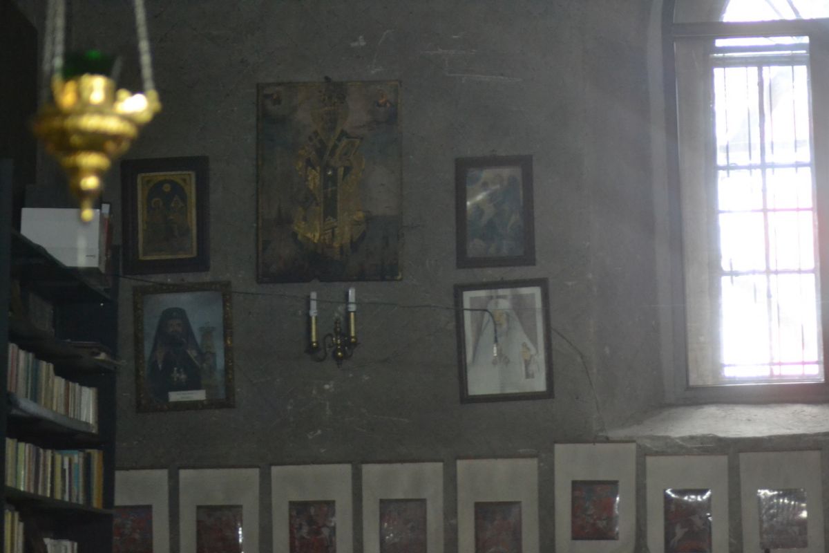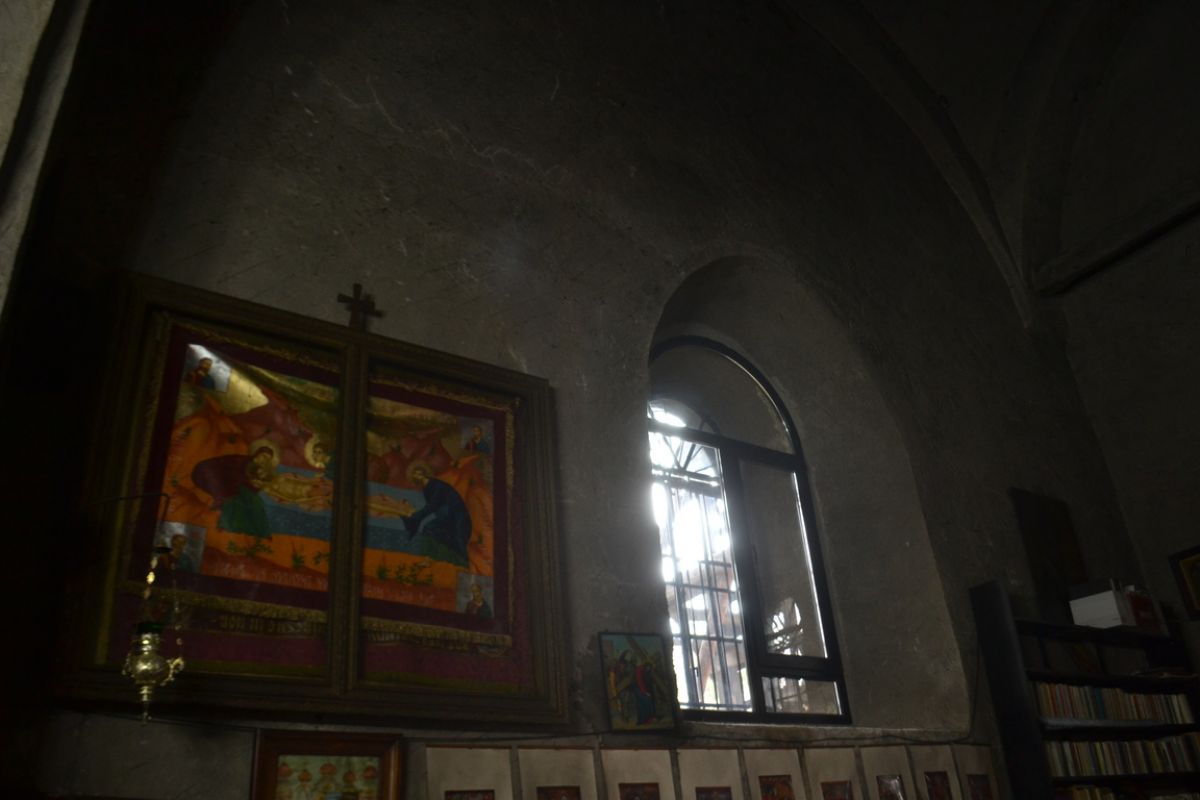 Etichetată deseori cu numele de “biserica albă” din cauza lipsei picturilor, în interiorul bisericii sunt o mulțime de icoane și obiecte sfințite care atenuează, oarecum, absența picturilor religioase.