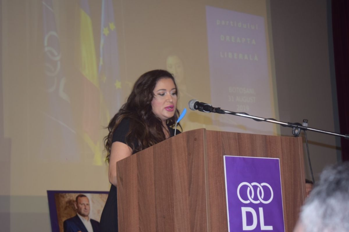 Olimpia Stavarache este președintele Organizației femeilor din Partidul Dreapta Liberală. A ajuns la Botoșani la Congresul Național și a fost invitată la tribună pentru un speech.