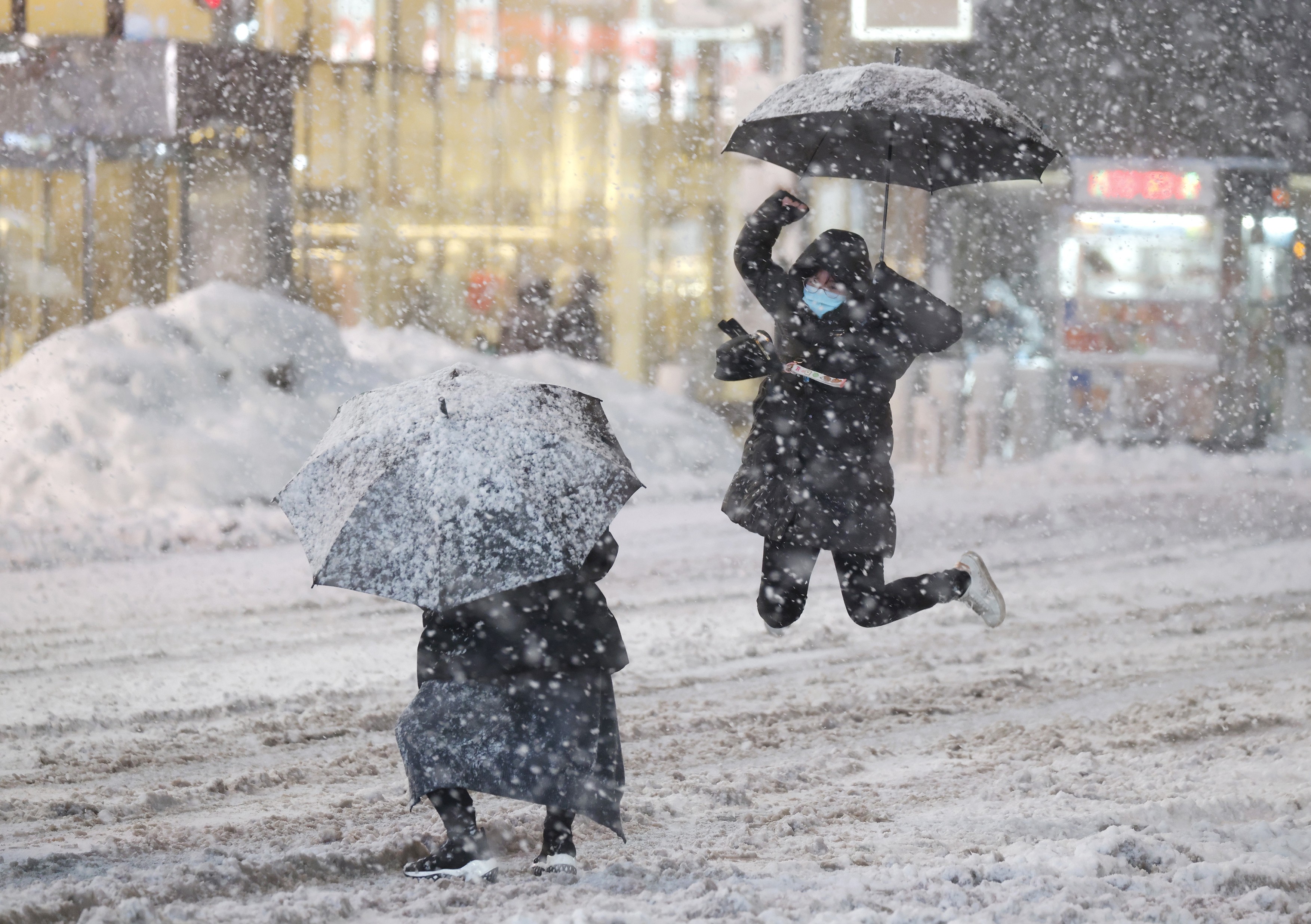 Metropola cu opt milioane de locuitori, deja acoperită de un strat subțire de zăpadă duminică seara, a decretat starea de urgență și o interdicție de circulație. Aceasta a intrat în vigoare duminică la ora 21:00 (luni, ora 04:00 în România) și va fi valabilă până luni la prânz (ora 19:00 în România).