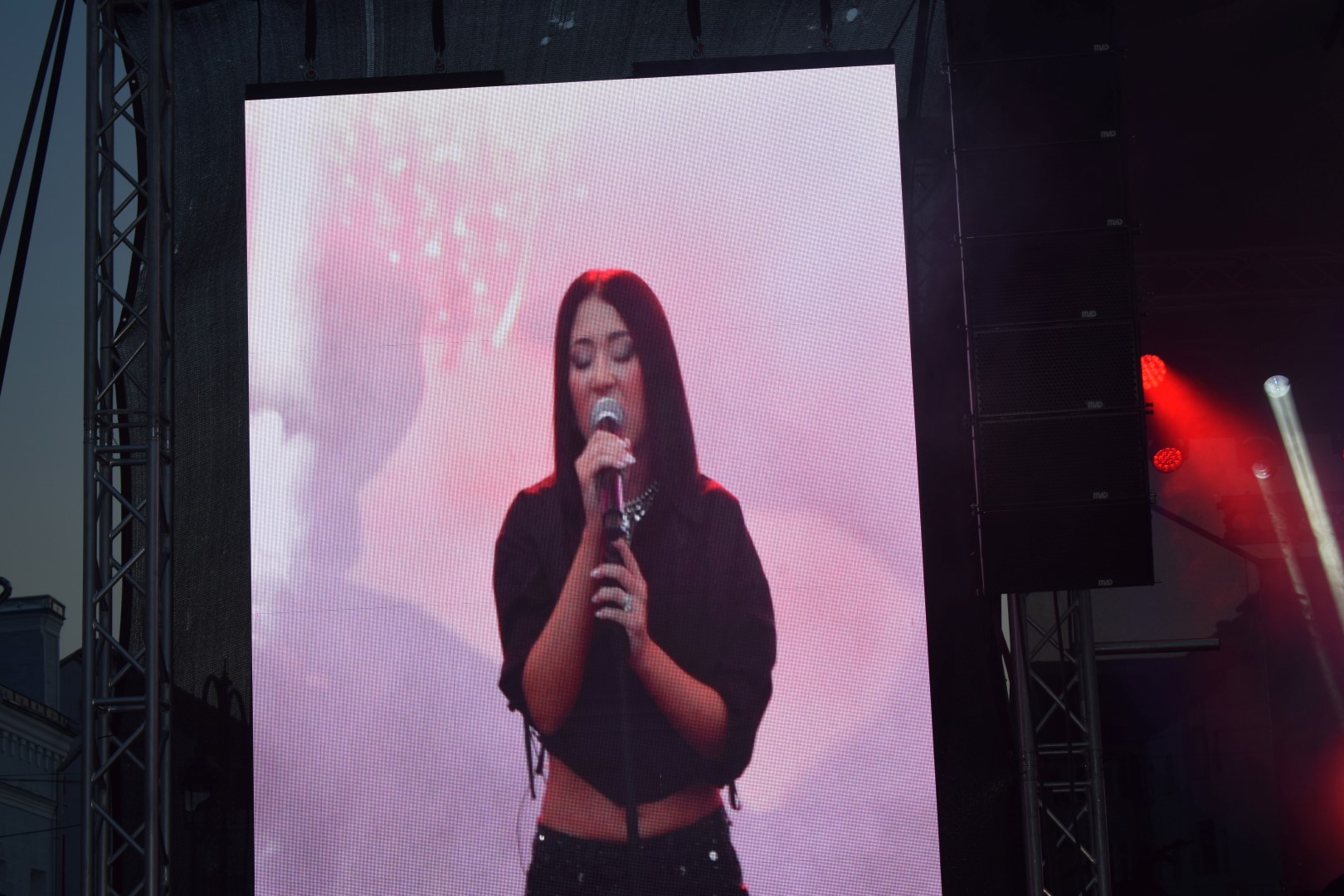 După spectacolul actorilor de la Teatrul pentru Copii și Tineret „Vasilache", pe scena amplasată în Centrul Vechi a urcat Nicole Cherry.