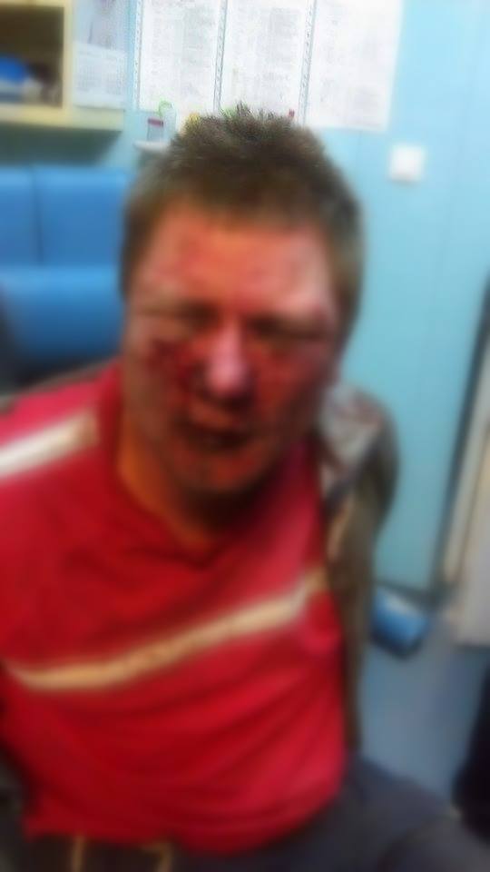 Ajuns la Unitatea de Primiri Urgențe, de această dată bărbatul cu fața distrusă a sărit la personalul medical. Agresiv, botoșăneanul arunca cuvinte injurioase oricui încerca să-l atingă pentru a-i oferi suport medical. Văzând că acesta refuză să fie îngrijit, medicii au chemat un echipaj de jandarmi pentru a-l liniști pe scandalagiul care ulterior a fost transportat la Secția de Psihiatrie pentru a-și reveni. (G.E.)