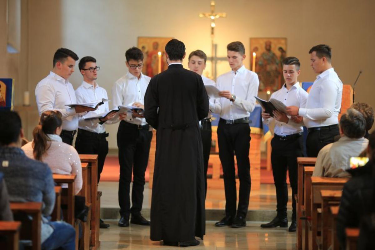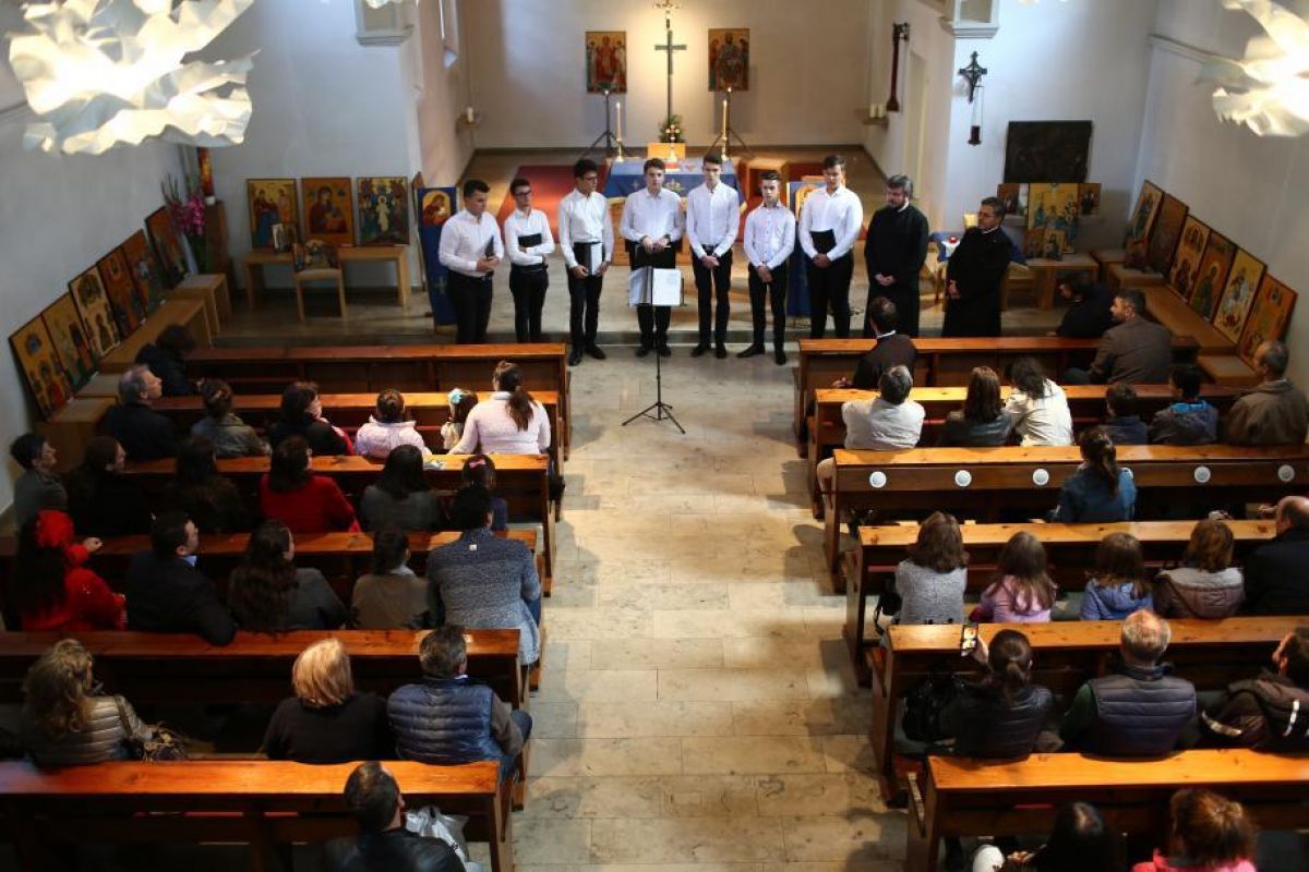 Seara, expoziția a fost găzduită la biserica Sf. Wilibrord de Parohia Nașterea Domnului din München, unde au fost prezenți numeroși credincioșii români din capitala bavareză care au apreciat repertoriul variat de cântări interpretate de seminarişti. (Sursa: Basilica)