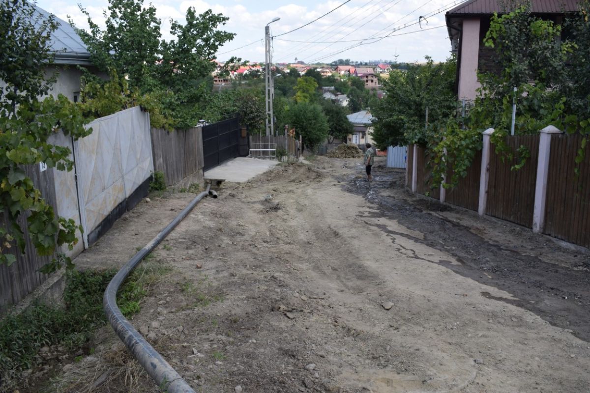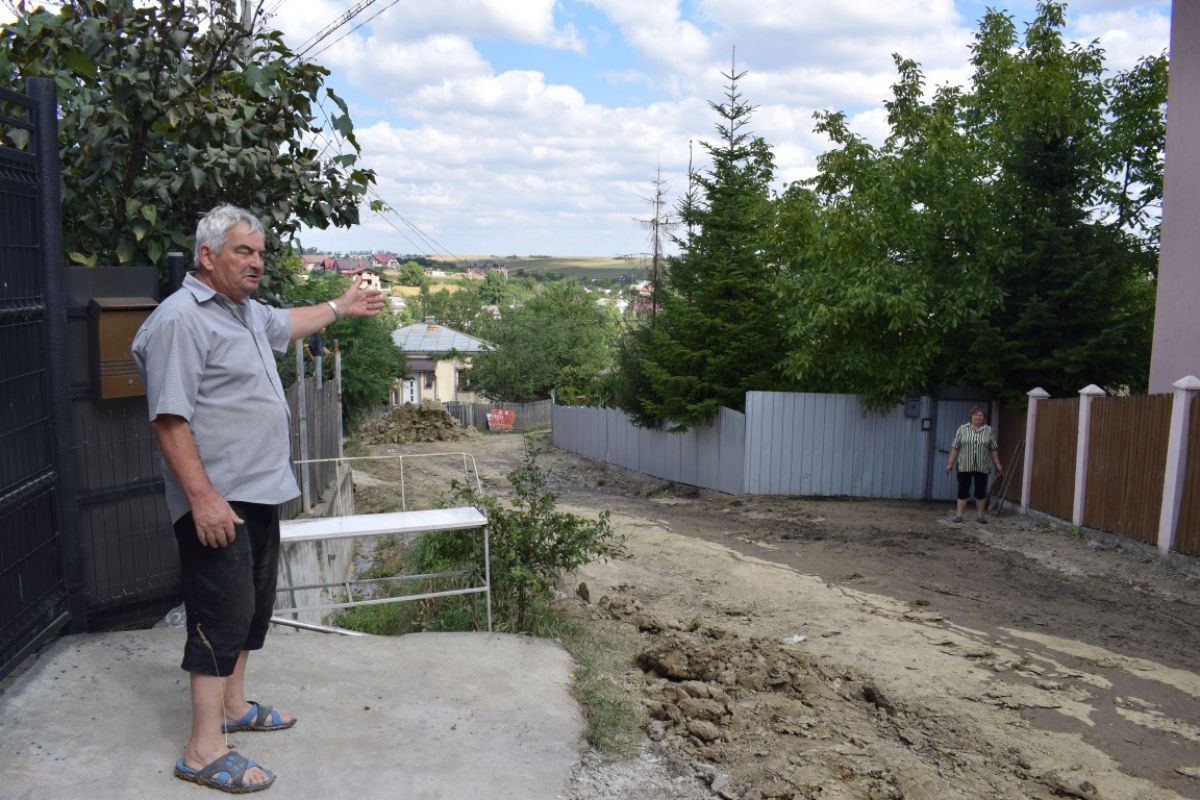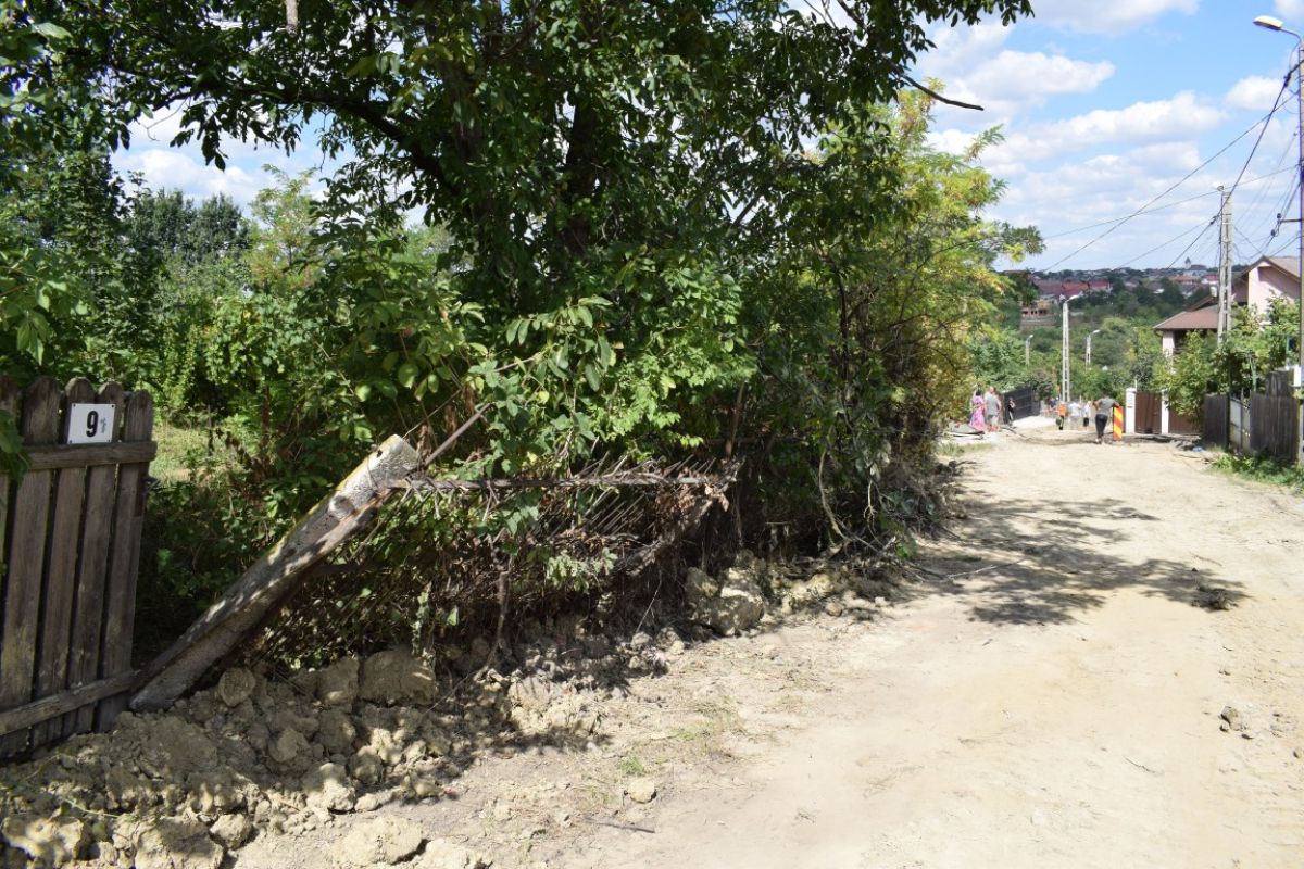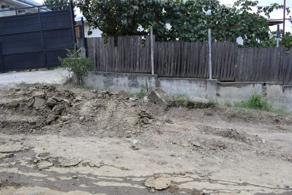 ”În urma șanțurilor săpate pentru montarea tuburilor, mormanul de pământ a fost depozitat la întâmplare, fără a se ține cont că este pe gardul unei proprietăți distrugându-l, în șanțurile de evacuare a apei săpate și îngrijite mereu de locuitorii acestei zone, după care a fost transportat undeva…nu știm unde. În momentul de față am aflat doar că pământul care ar fi trebuit tasat la loc nu mai este și strada nu mai e stradă ci doar niște cratere rămase peste tot. Cratere care prin așezarea lor rup temeliile gardurilor noastre, a teraselor și a canalelor de scurgere din fața proprietăților”