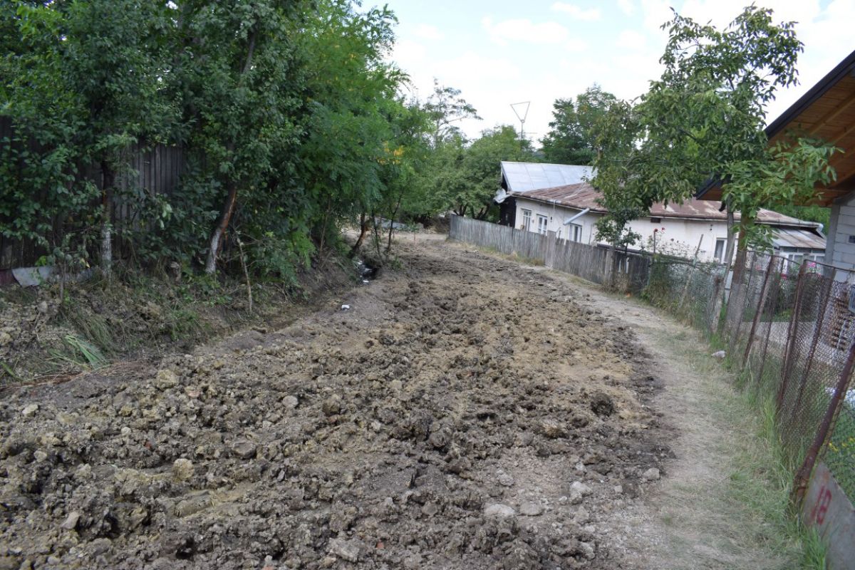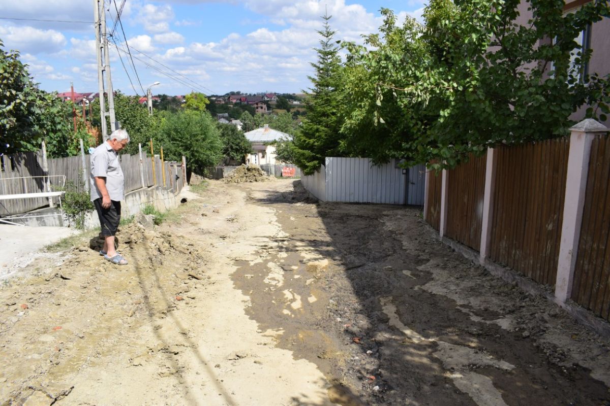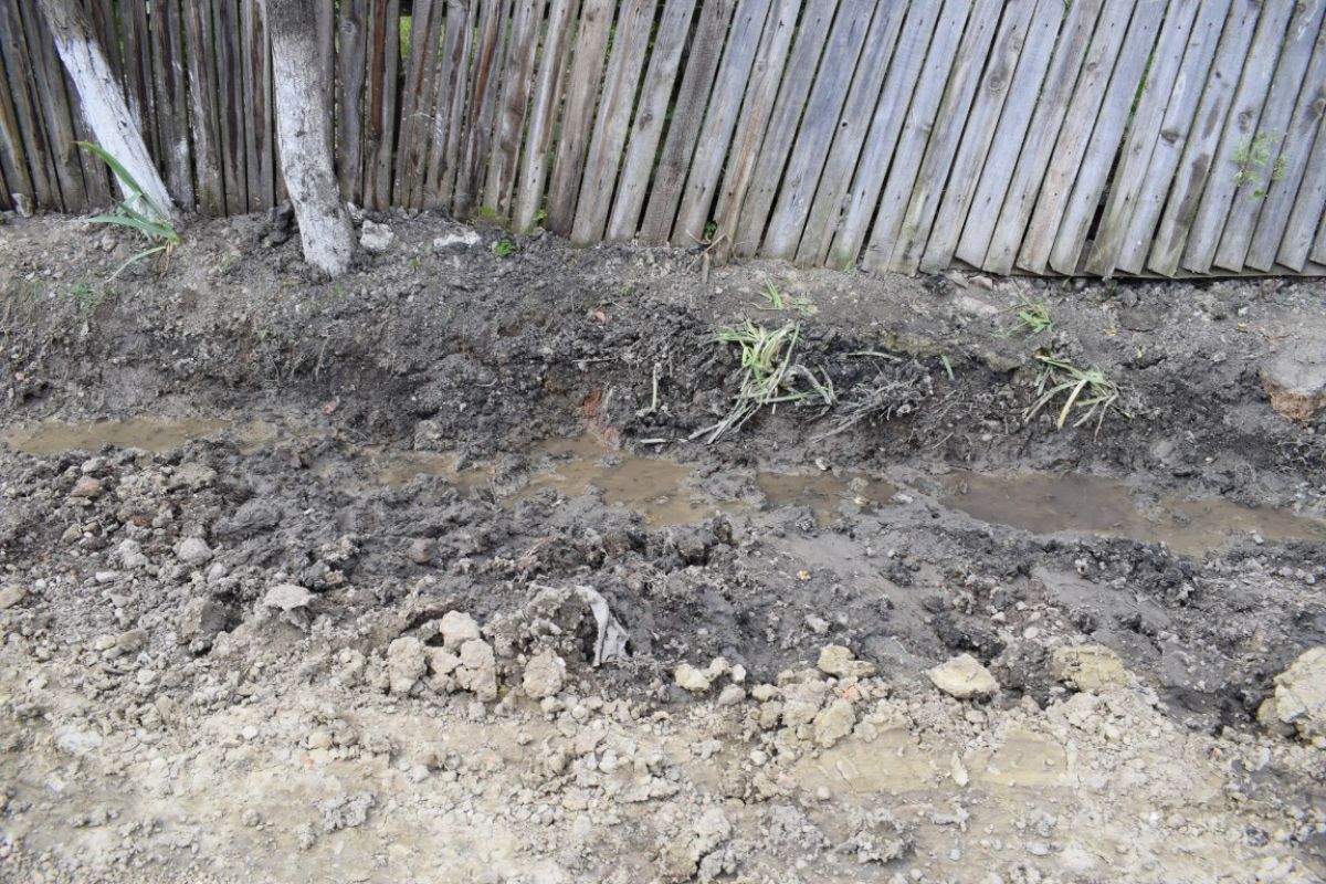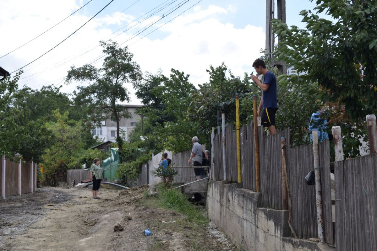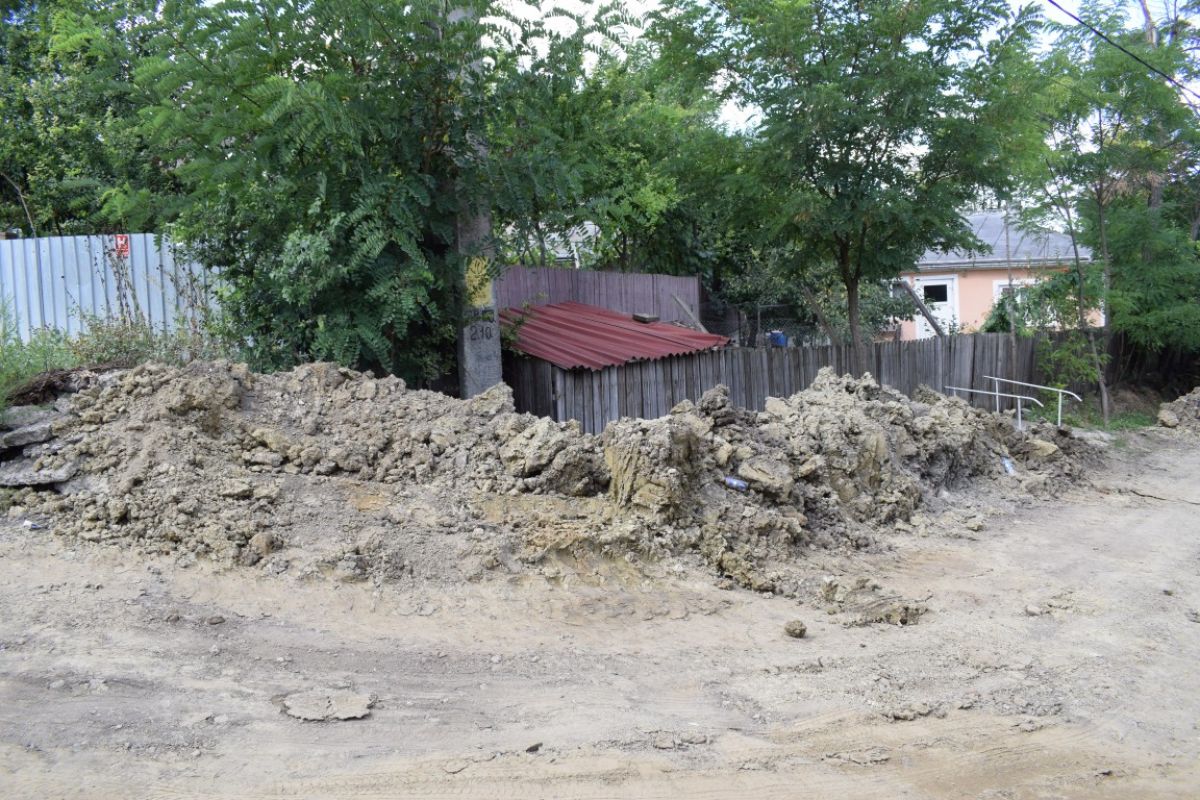 ”În urma șanțurilor săpate pentru montarea tuburilor, mormanul de pământ a fost depozitat la întâmplare, fără a se ține cont că este pe gardul unei proprietăți distrugându-l, în șanțurile de evacuare a apei săpate și îngrijite mereu de locuitorii acestei zone, după care a fost transportat undeva…nu știm unde. În momentul de față am aflat doar că pământul care ar fi trebuit tasat la loc nu mai este și strada nu mai e stradă ci doar niște cratere rămase peste tot. Cratere care prin așezarea lor rup temeliile gardurilor noastre, a teraselor și a canalelor de scurgere din fața proprietăților”