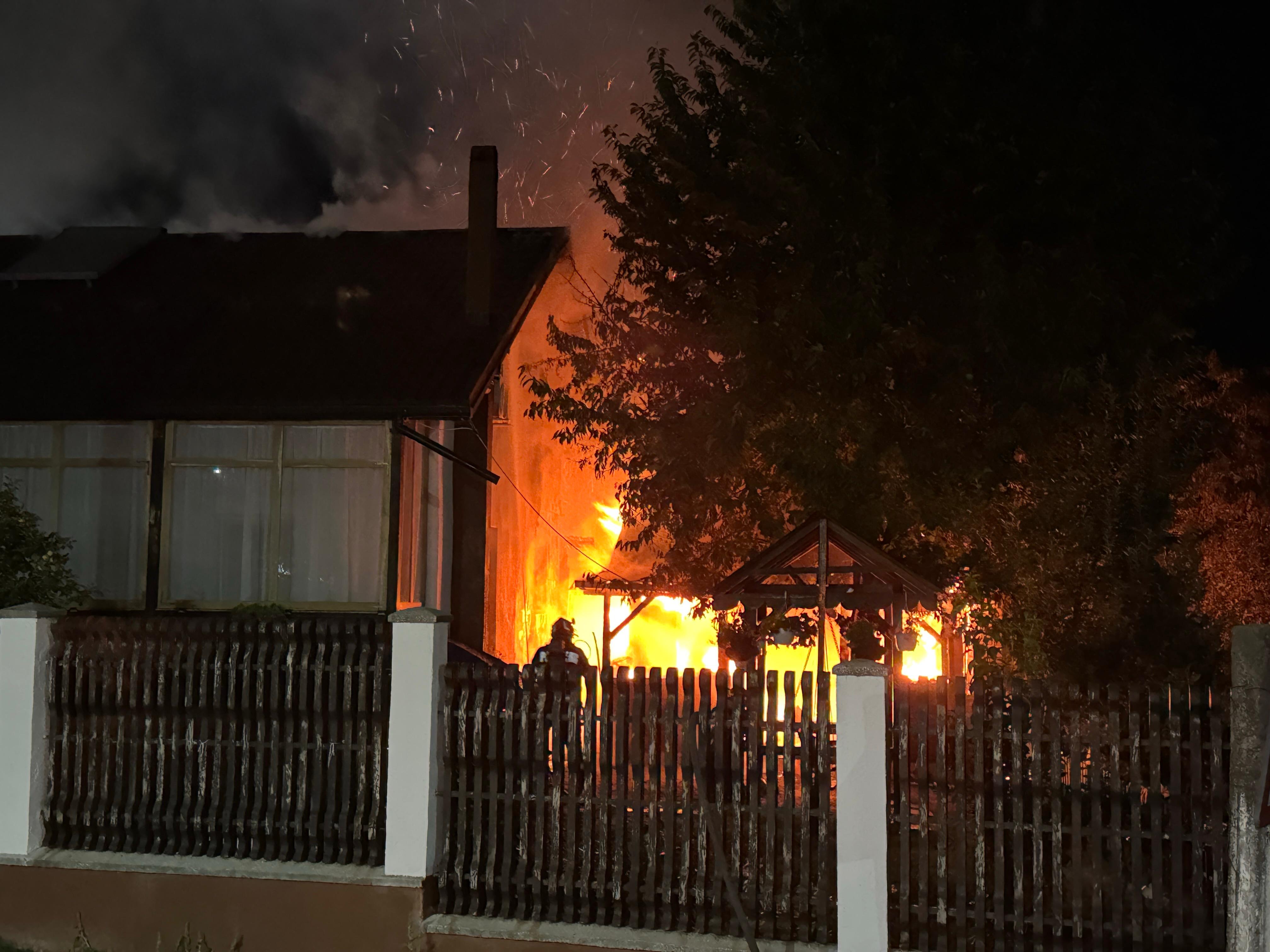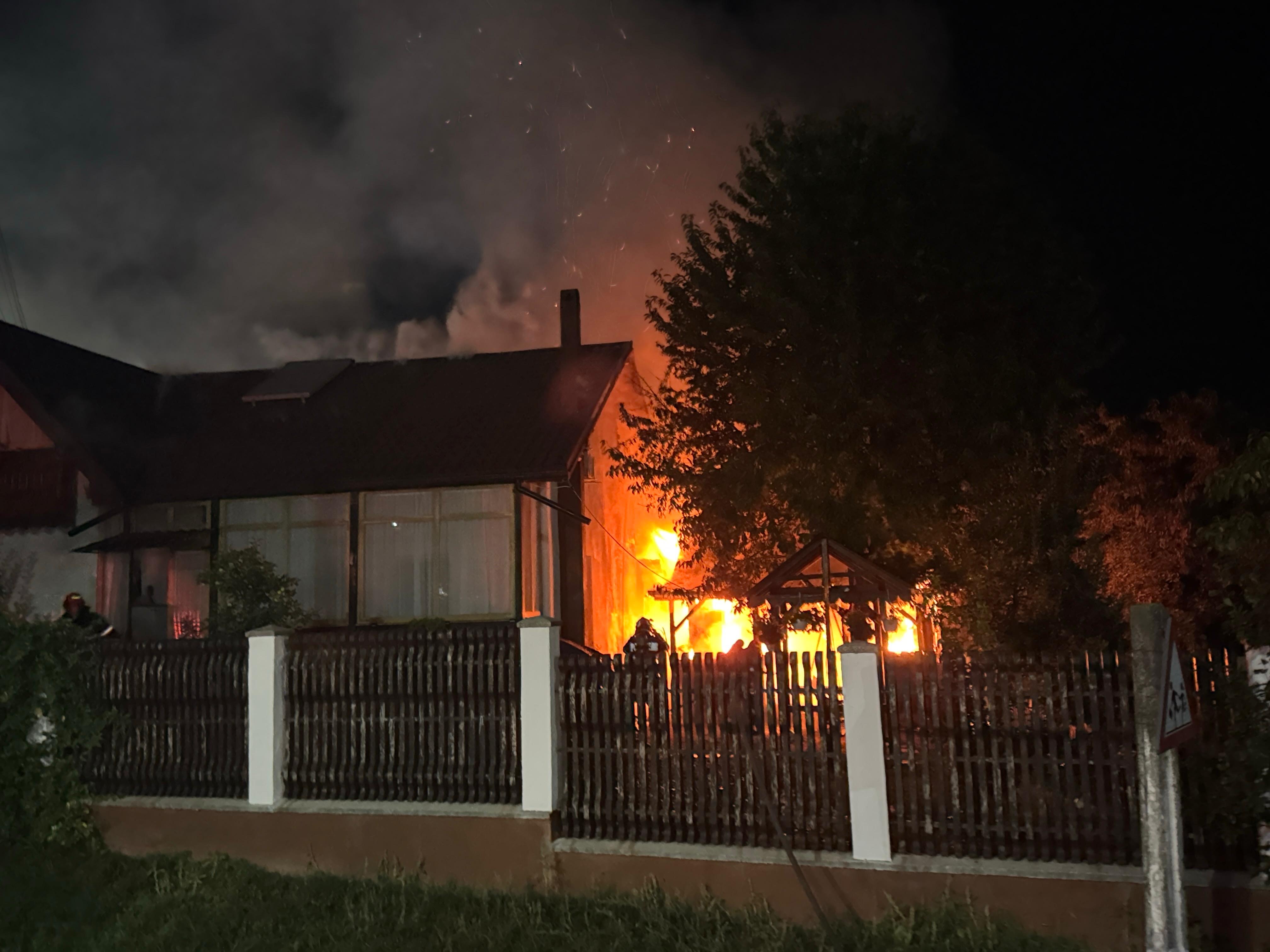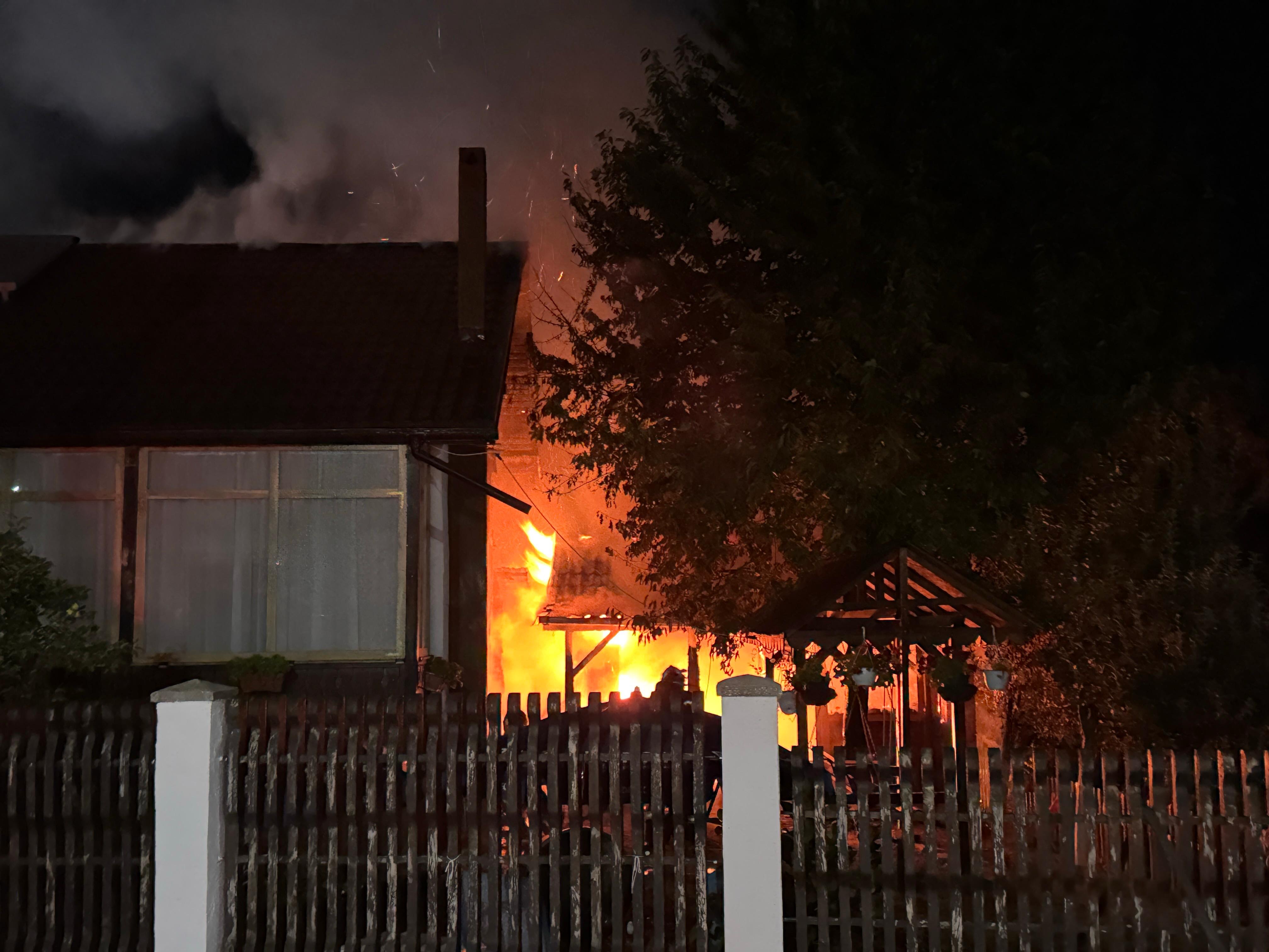 Incendiul s-a extins și la o parte din acoperișul casei. Alarma a fost dată puțin înainte de miezul nopții.