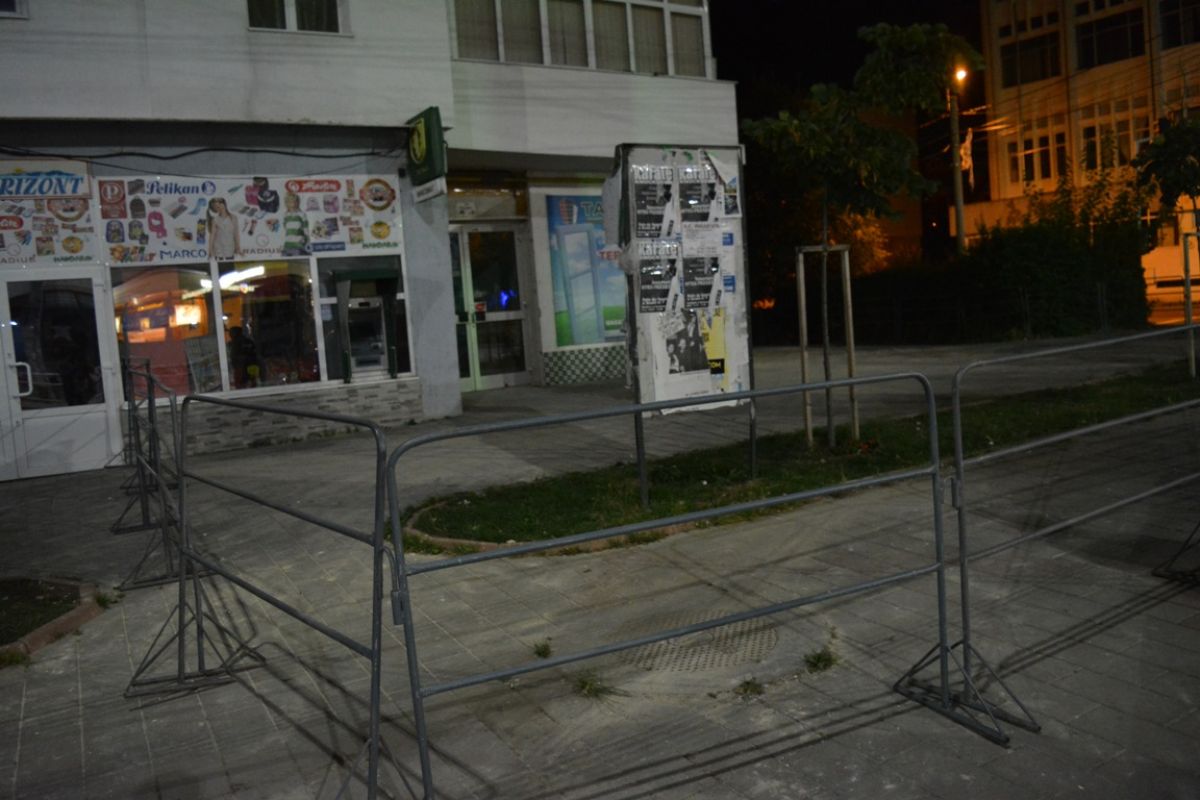 De asemenea, jandarmi au montat garduri pe trotuarul din jurul blocului, de la cofetăria Rida și până dincolo de frizerie.