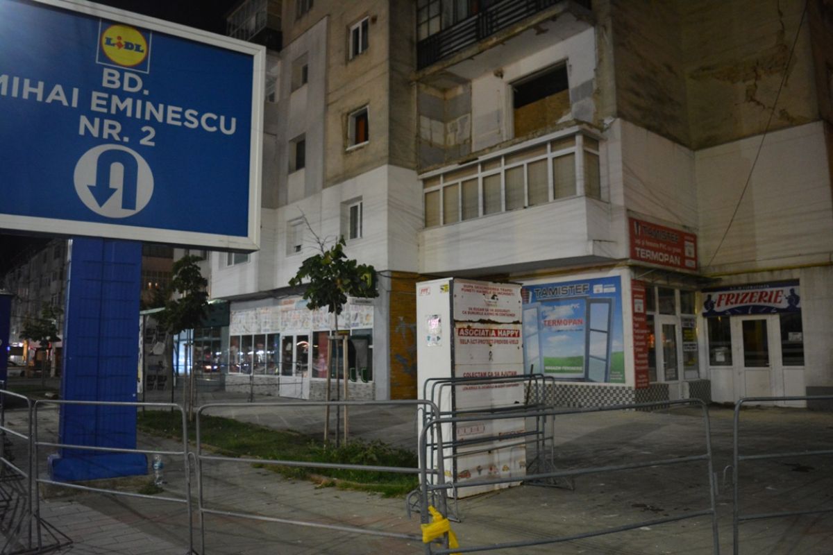 Toată noaptea blocul a fost păzit în partea dinspre stradă de un echipaj de jandarmi, în timp ce în spate, în apropierea Bisericii Bunavestire, acționa Poliția Locală.