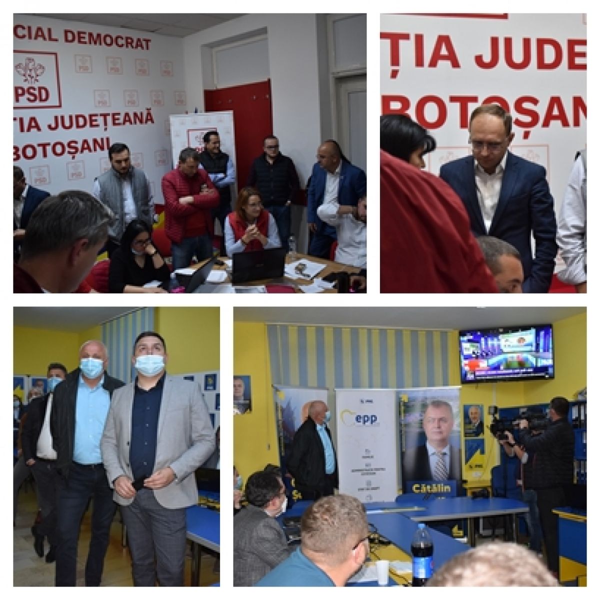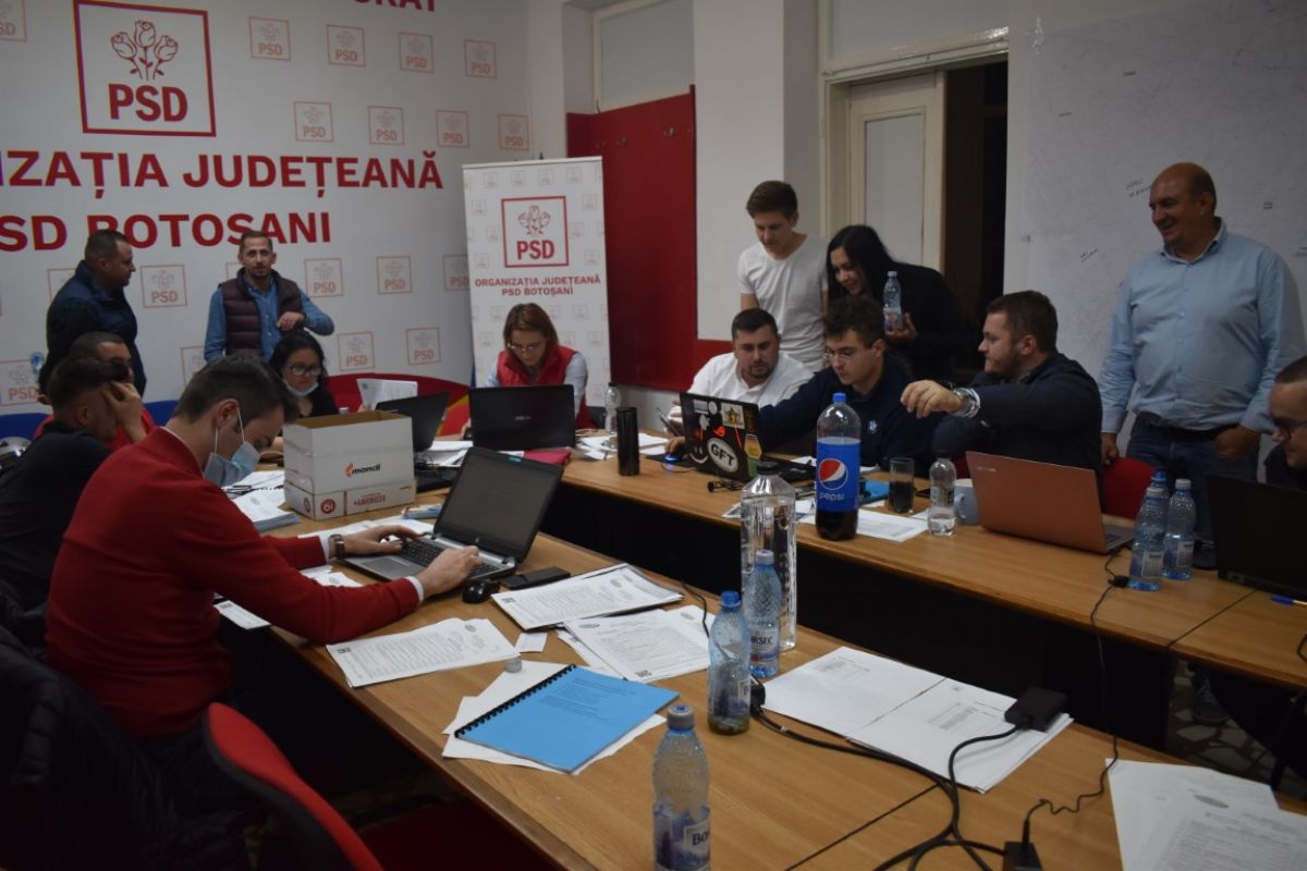 Înainte de ora 21:00, când se conturează imaginea rezultatelor alegerilor la televiziunile naționale, la sediul PSD Botoșani din strada Cuza Vodă era neașteptat de liniște. Mai ales că, pe parcursul zilei, semnalele unei victorii au fost multe și dătătoare de speranță.