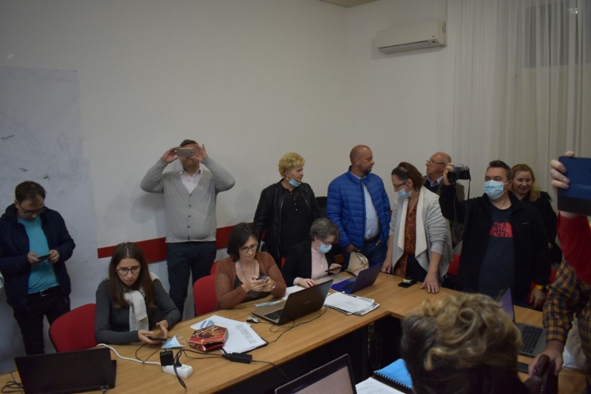 Erau în sediu câțiva tineri și parlamentarii. Și cei doi candidați cu fețe obosite, pe care zâmbetul se contura mai degrabă de complezență. Mai ales la ora la care deja minutele se scurgeau către ora 21:00, care încheia procesul de vot.
