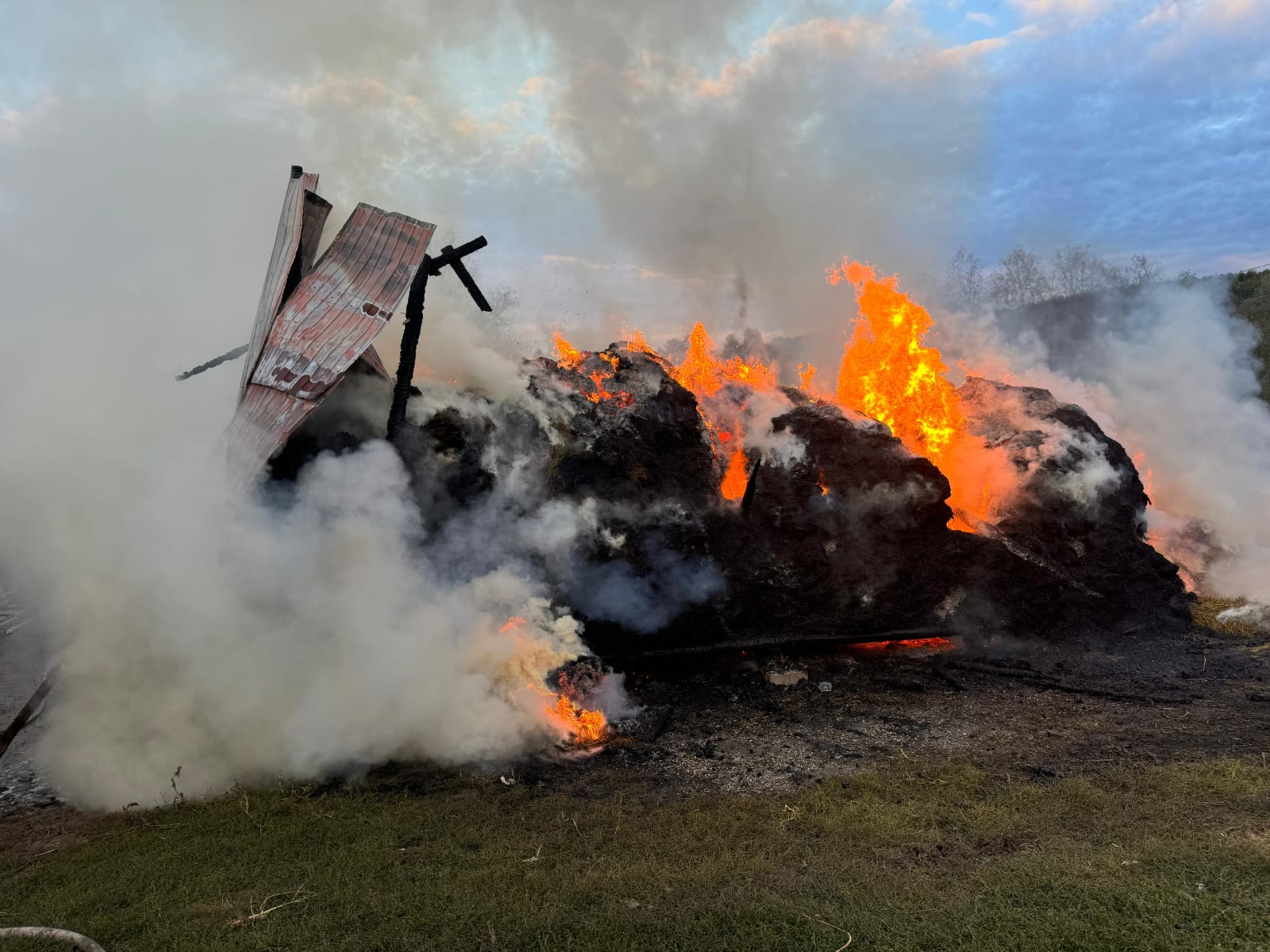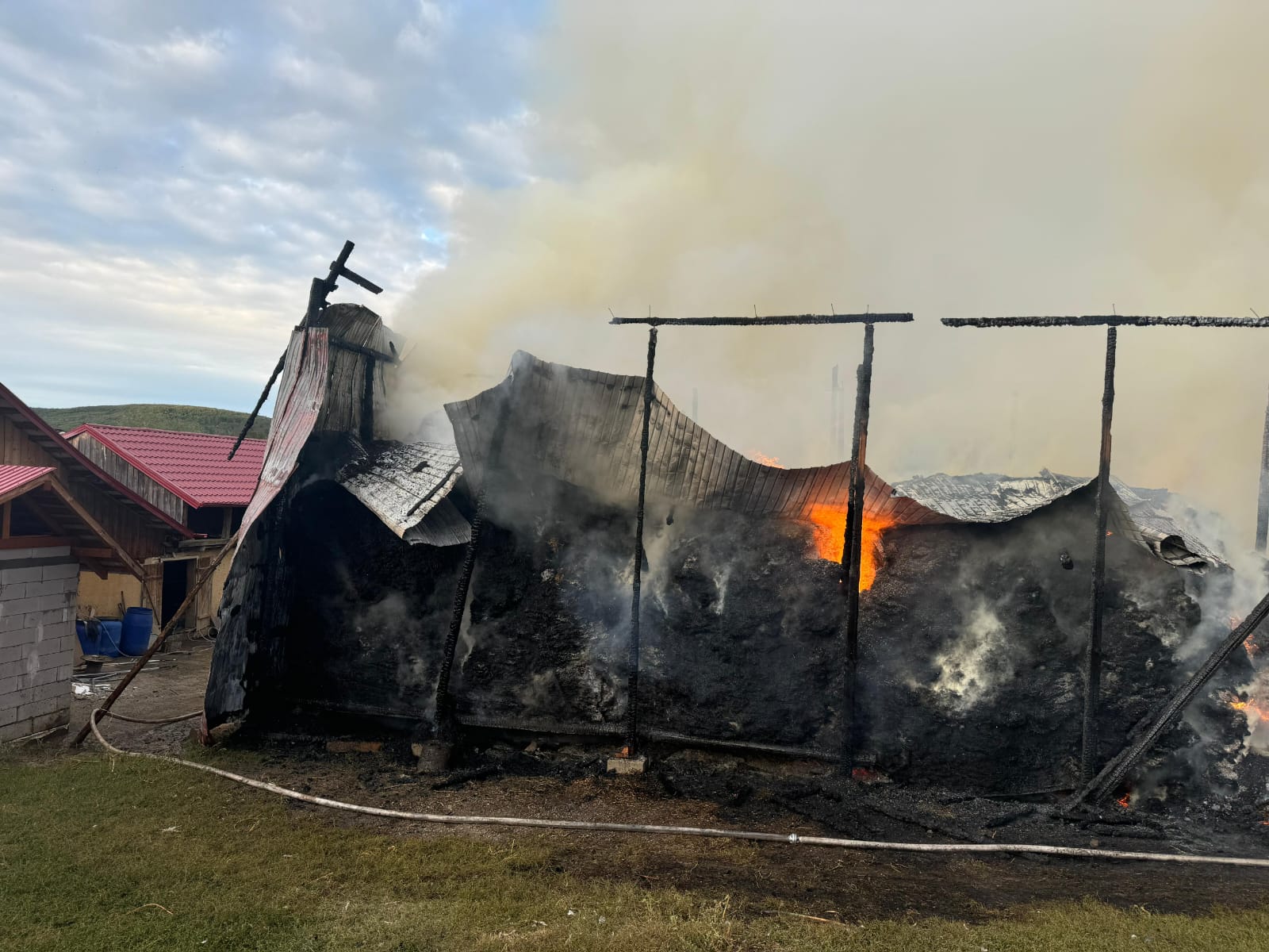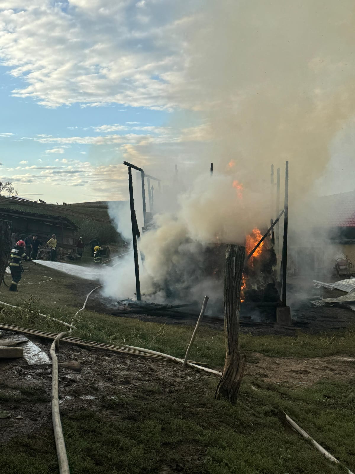 Aceștia au constatat faptul că ardeau peste 30 de tone de furaje și au intervenit rapid astfel încât flăcările să nu se extindă la casă și celelalte construcții din gospodărie.