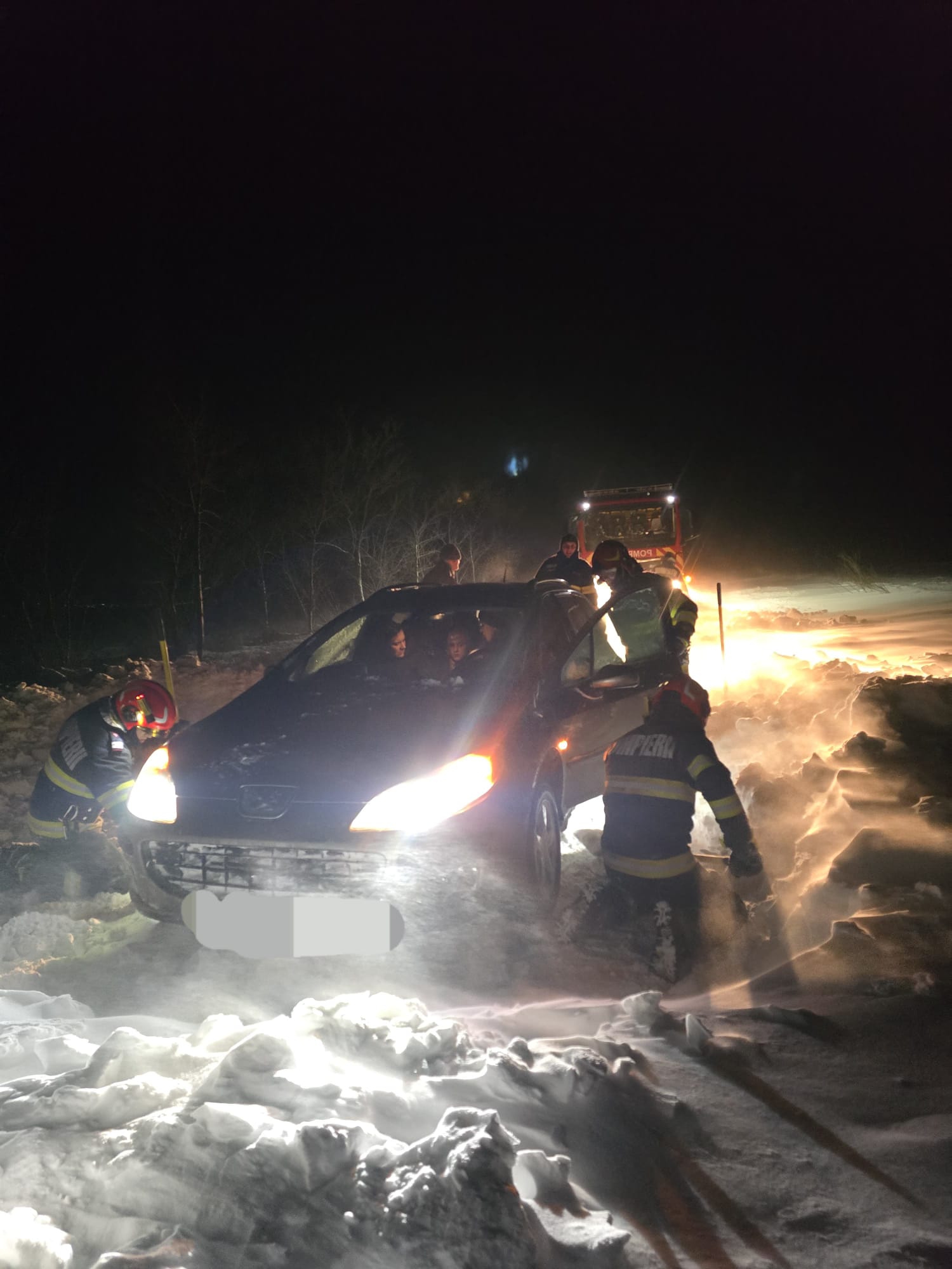 Alte șapte persoane, aflate în două autoturisme, au solicitat ajutorul pompierilor după ce au rămas înzăpezite pe DJ 282, între localitățile Drăgușeni și Mihail Kogălniceanu.