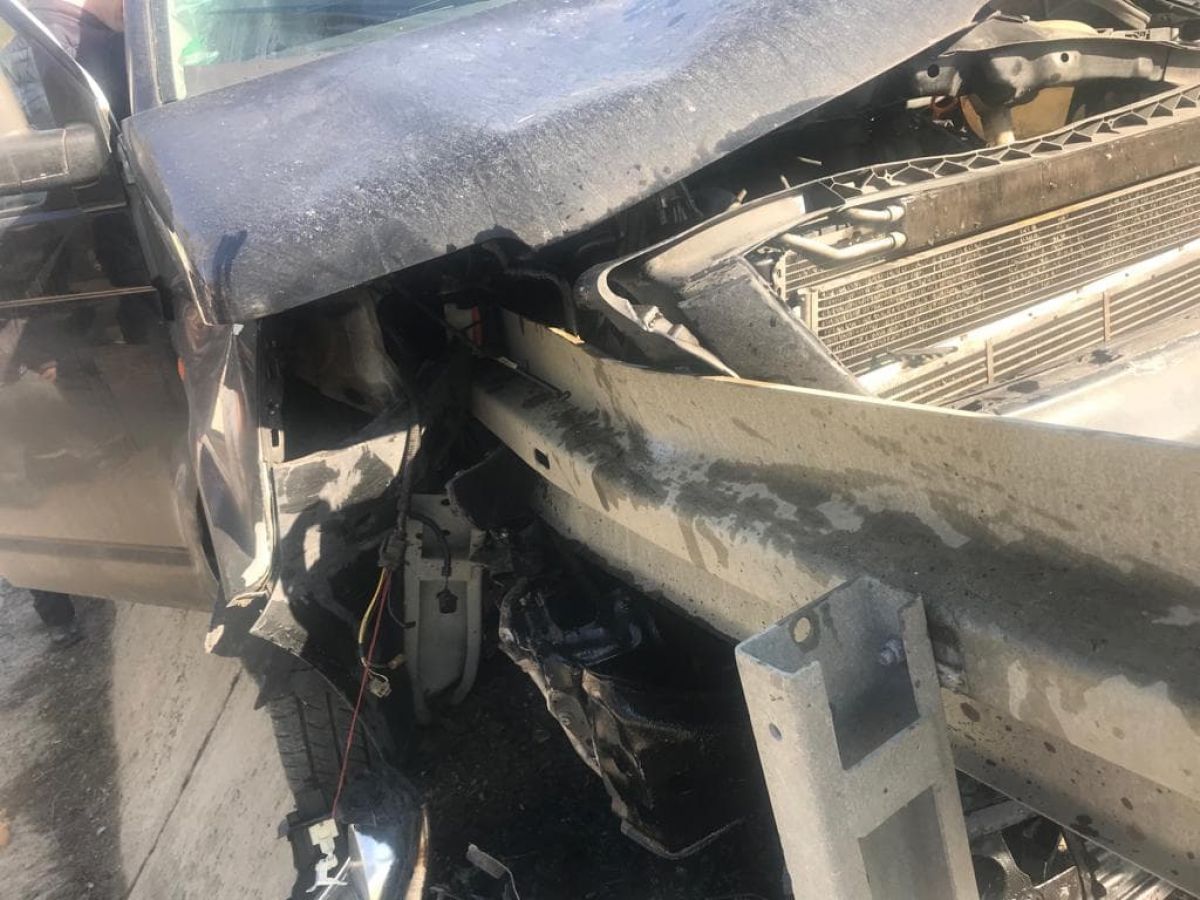Automobilul a fost puternic avariat în partea din față după ce în jur de trei-patru metri de parapet a intrat în habitaclul mașinii.