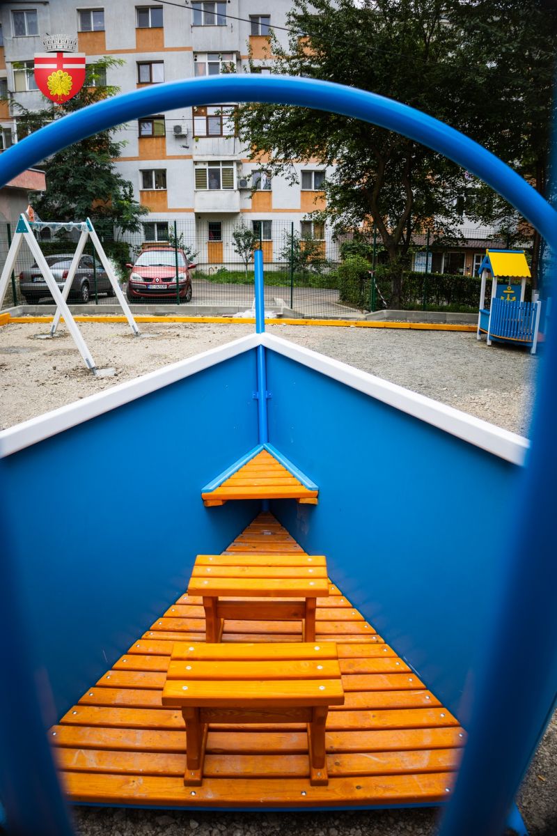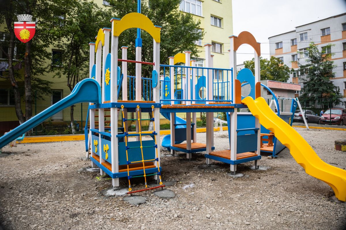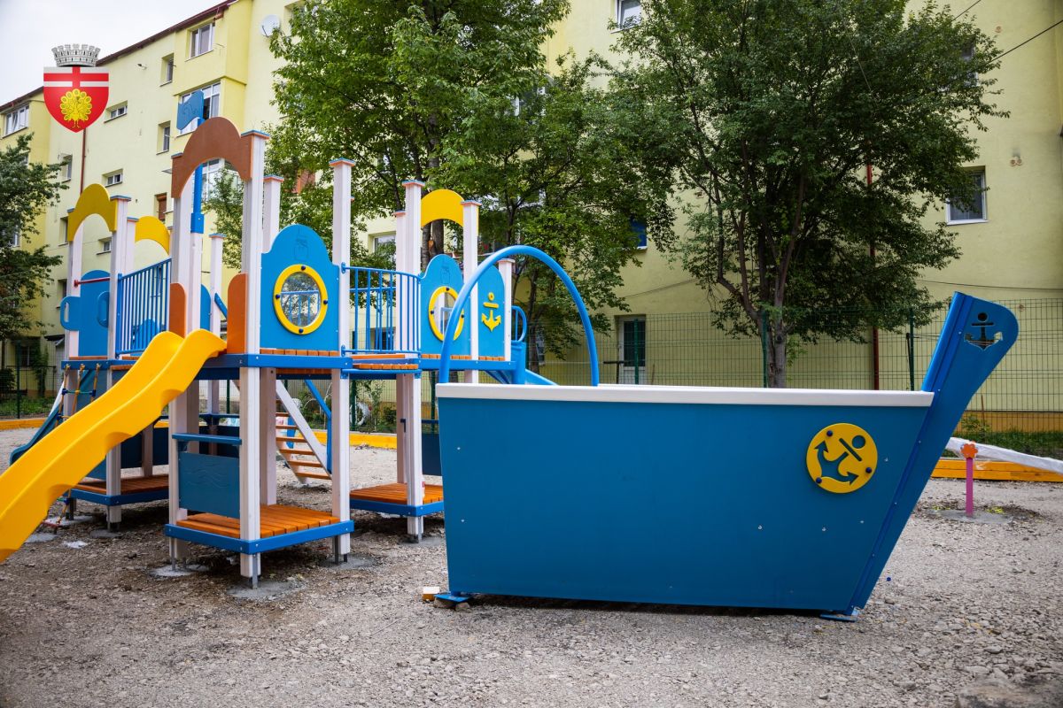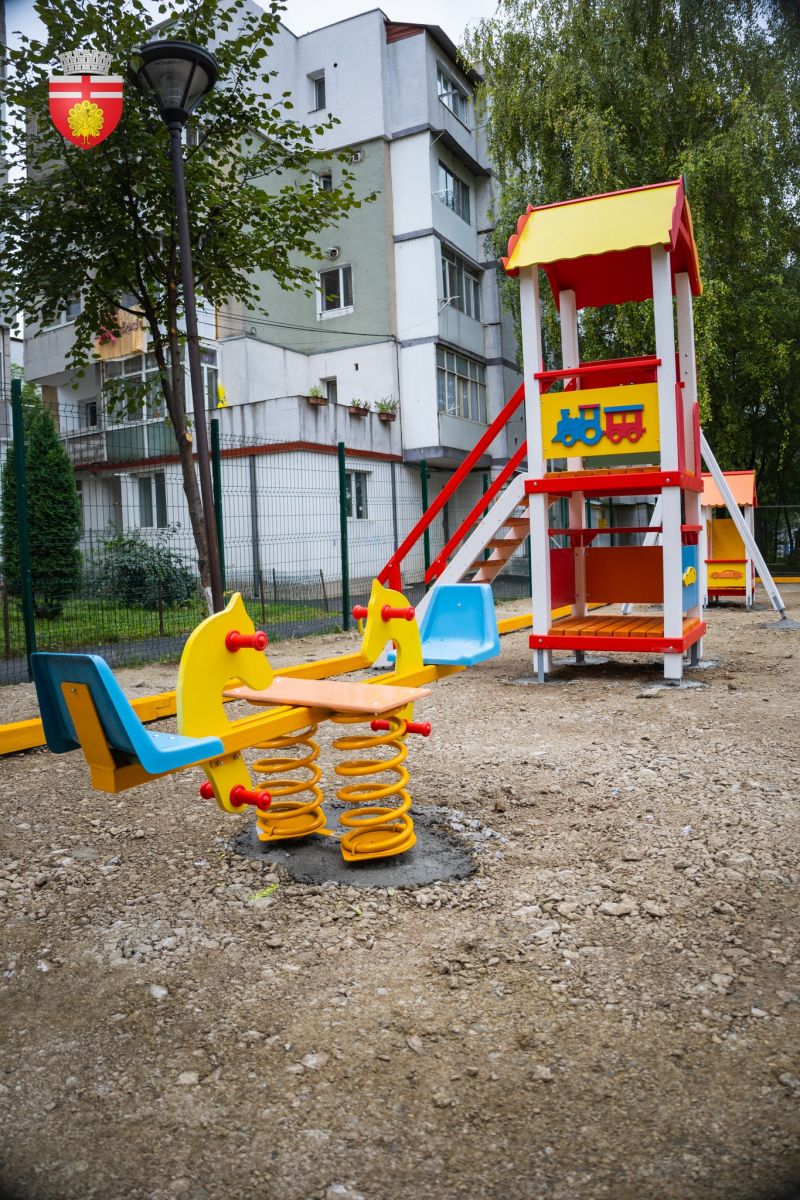 Într-un stadiu avansat sunt și lucrările la amenajarea spațiului de joacă de pe Bulevardul George Enescu nr. 9. Și aici va fi completat mobilierul de joacă în tematica „Speedpark” – complex de joacă trenuleț și va fi amenajat tartan.