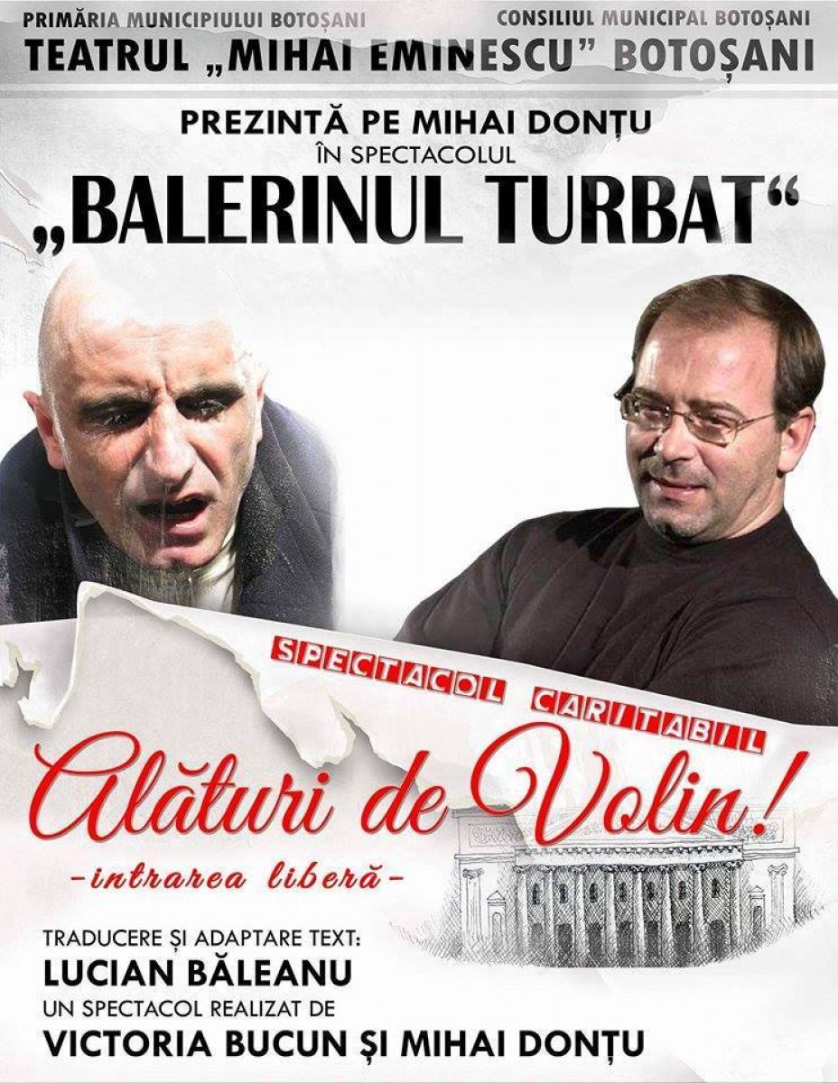 ”Ne-am bucura să fim cât mai mulți botoșăneni în sala de spectacole, pentru a-i aplauda pe actori și a-l sprijini financiar pe Volin!”, se arată în comunicatul de presă trimis redacției de Teatrul Mihai Eminescu Botoșani.
