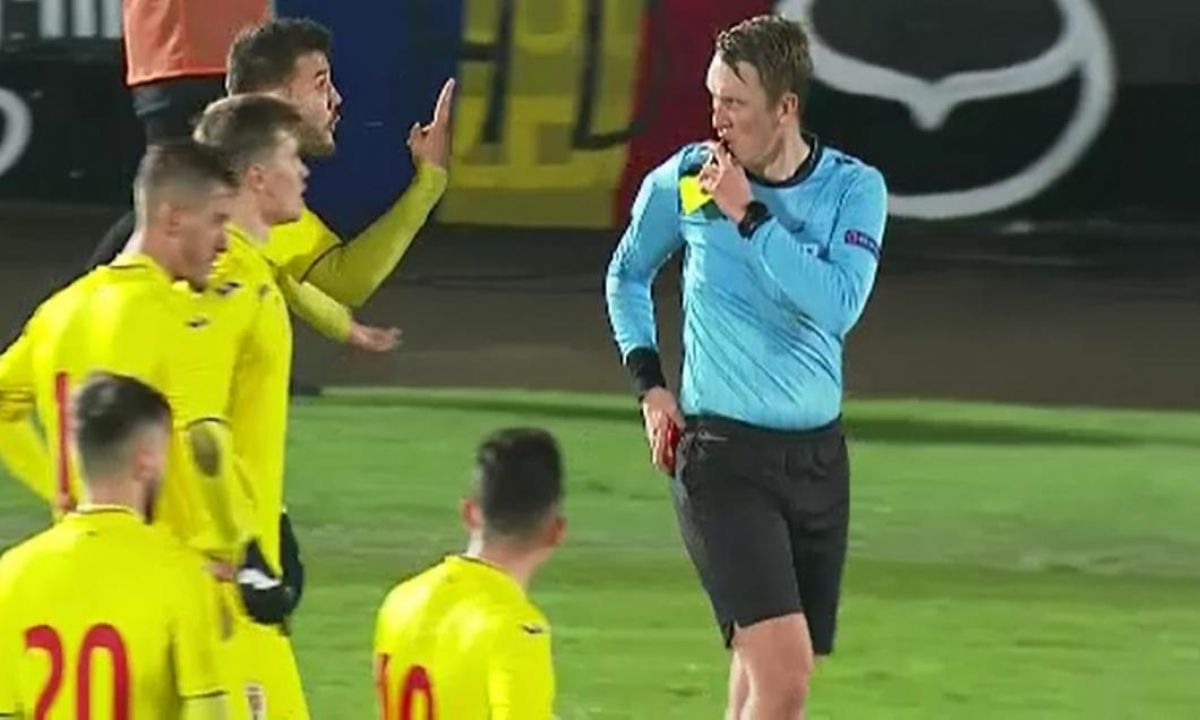 Andrei Chindriș (20 de ani) i-a reproșat arbitrului faptul că l-a eliminat, în meciul Irlanda de Nord U21 - România U21, scor 0-0.