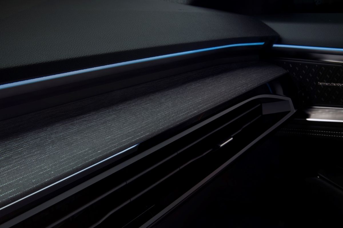 Ca o extensie a tabloului de bord, panourile ușilor din față și din spate sunt acoperite cu spumă în partea de sus. Acestea au aceleași detalii și finisaje pentru și mai mult rafinament, indiferent de poziția ocupanților. Materialele textile tapițate se estompează subtil de la negru la gri deschis și se potrivesc cu pielea Synderm (piele sintetică, având o granulație fină) pentru o notă elegantă.