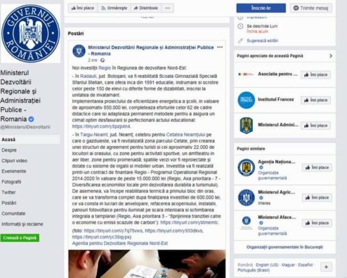 Ca de exemplu într-un loc de muncă bine plătit de la un minister deloc lipsit de importanță cum este cel al Dezvoltării. Ori din solidaritate cu cei care au gafat în privința manualelor de Geografie, ori dintr-o pură neglijență la serviciu sau din oboseala cauzată de prelucrarea datelor ce țin de vreo materie neglijată în școală, funcționarii care se ocupă de comunicarea pe Facebook (Da! Ministerul Dezvoltării Regionale și Administrației Publice nu a neglijat acest aspect) au spus că Municipiul Rădăuți face parte din județul Botoșani.
