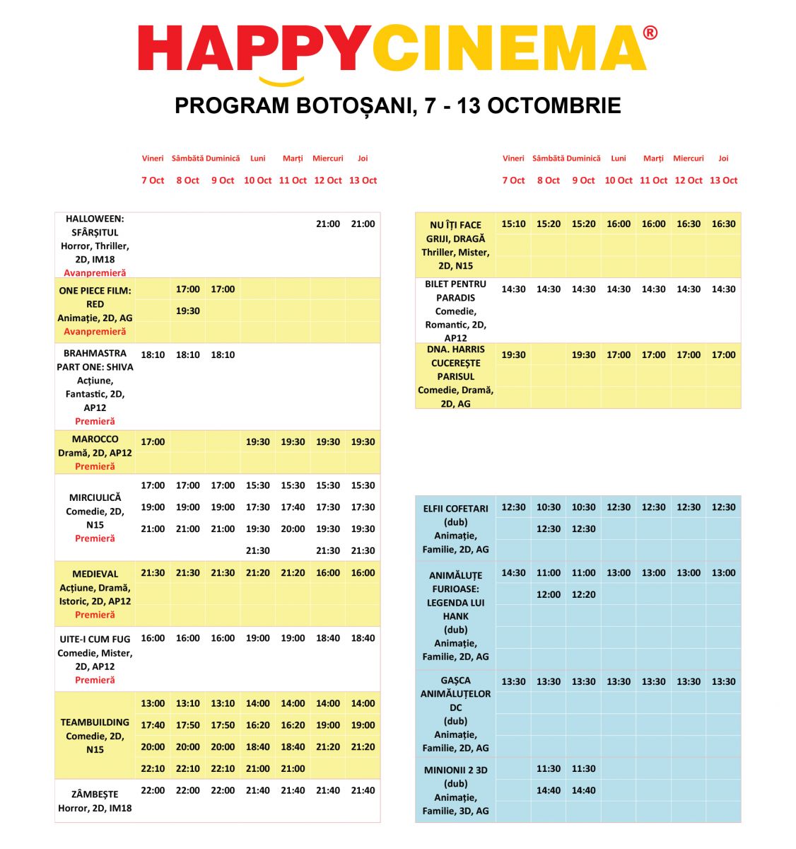 Săptămâna viitoare aduce la Botoșani două avanpremiere, însă de astăzi, 7 octombrie, cinefilii sunt așteptați la nu mai puțin de cinci premiere.