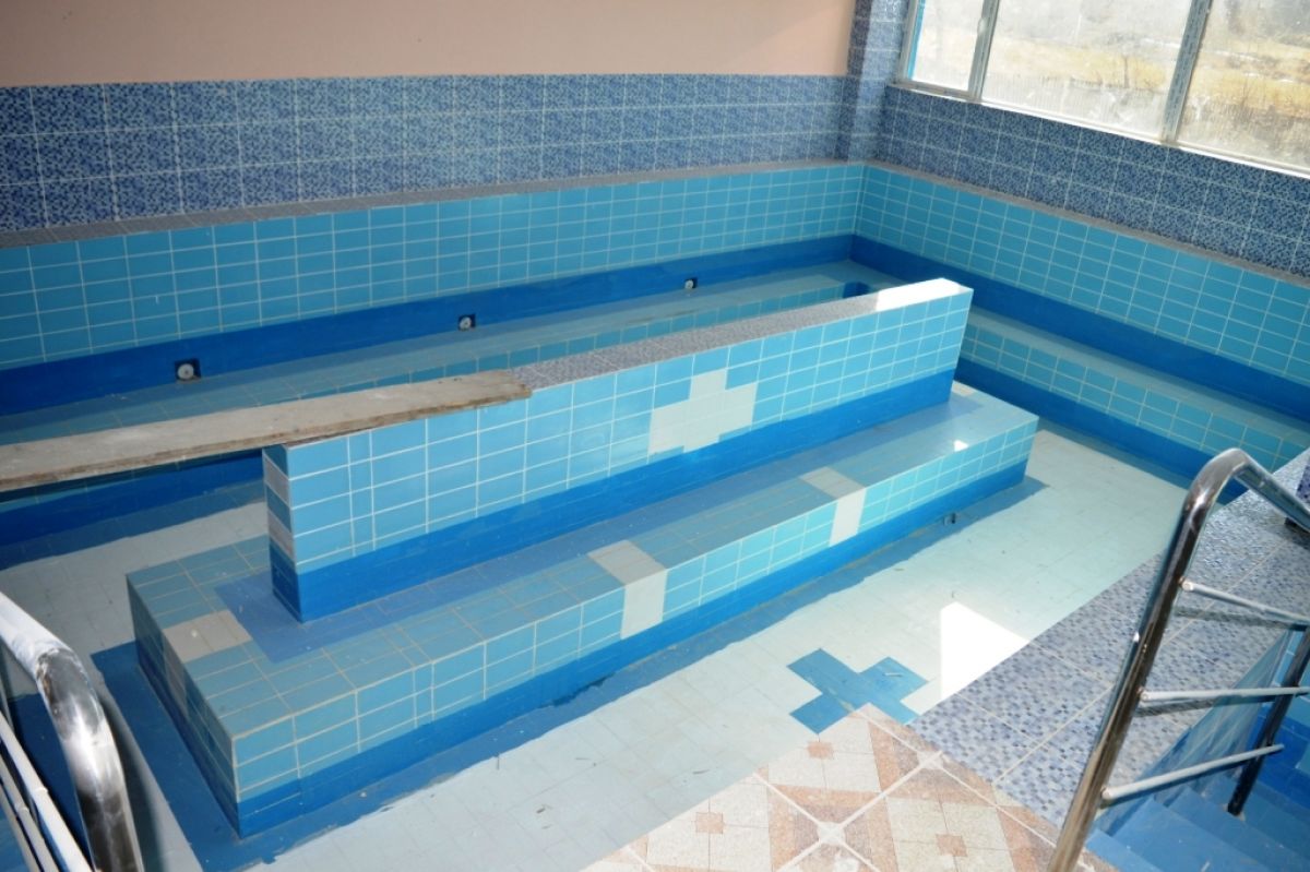 – 1 bazin cu apa de tratament adusă de la Bălțătești, 40 mp și adâncimea de 0,9 m, prevăzută cu scaune