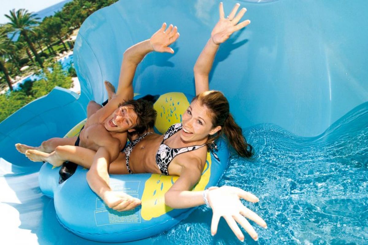 – 1 bazin de 450 mp, cu adâncimea de 1,3 m, prevăzut cu paturi în apă cu jeturi de aer, bar în apa, jacuzzi, și zonă prevăzută cu valuri și splitere de apă pentru hidromasaj