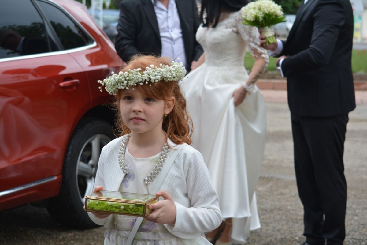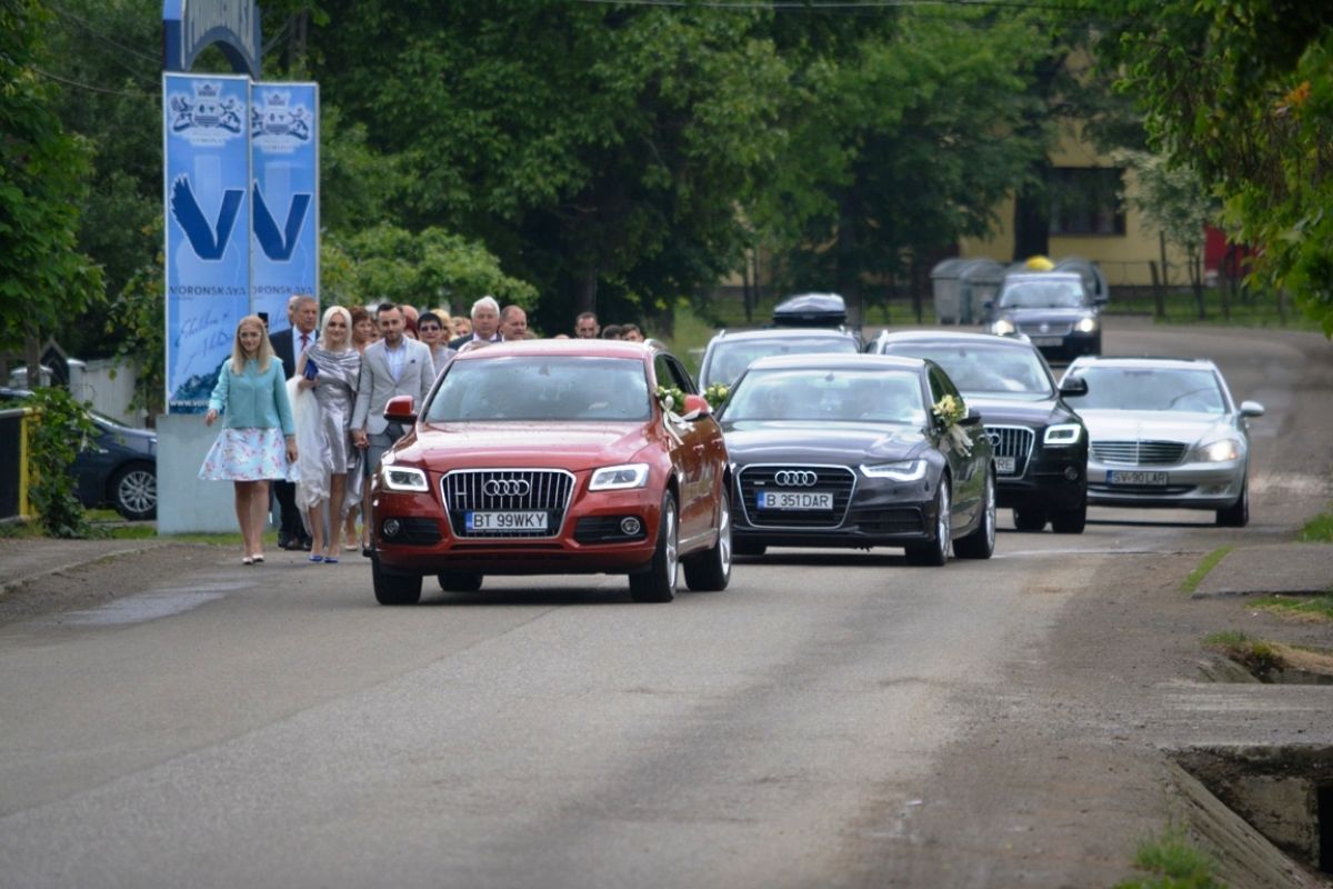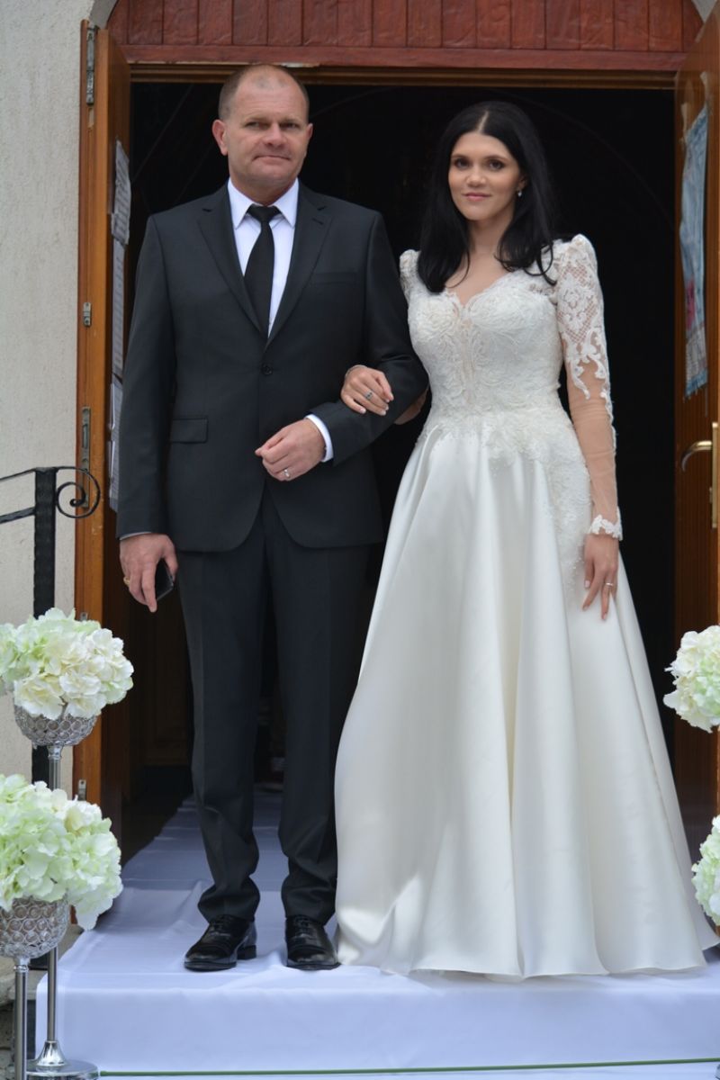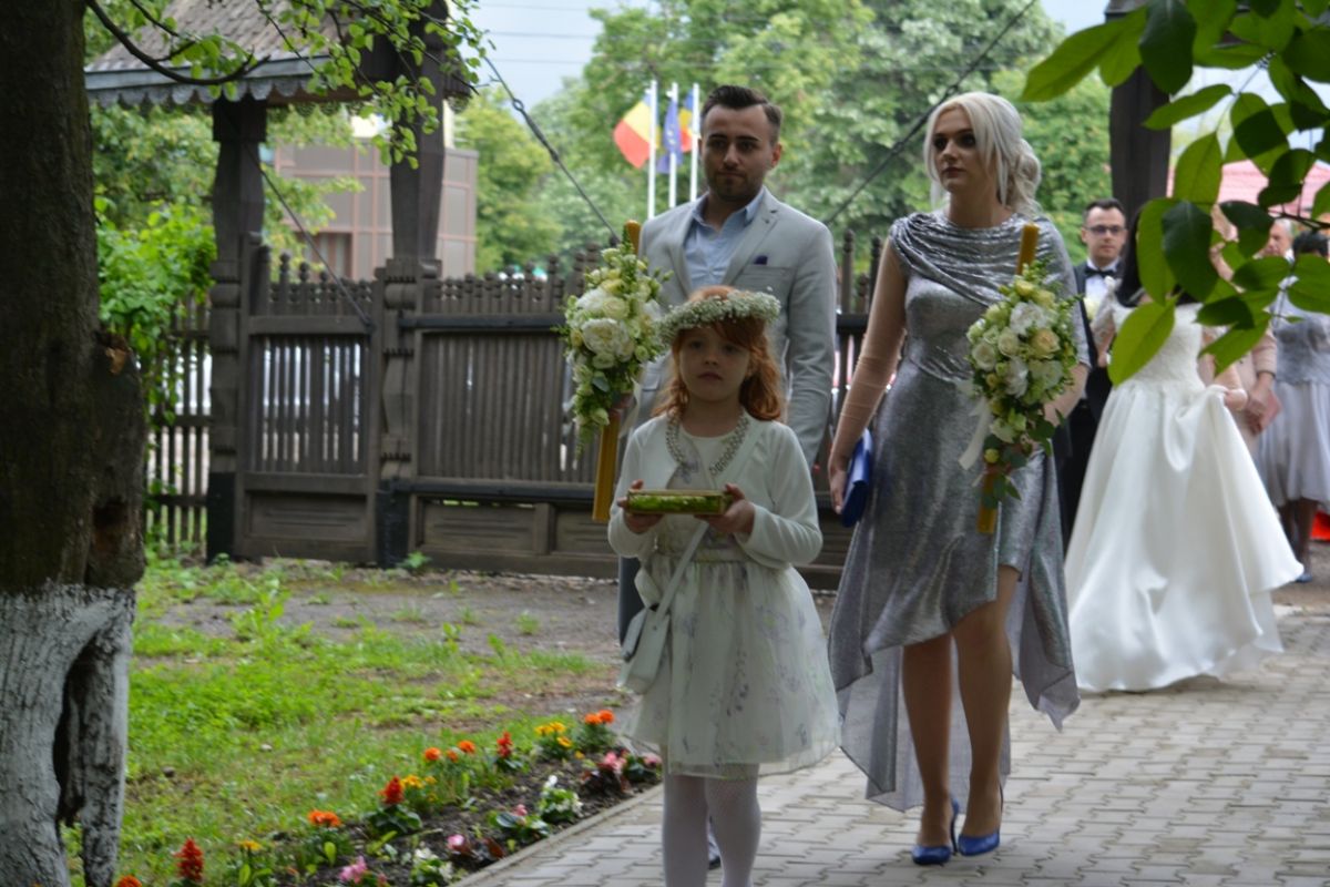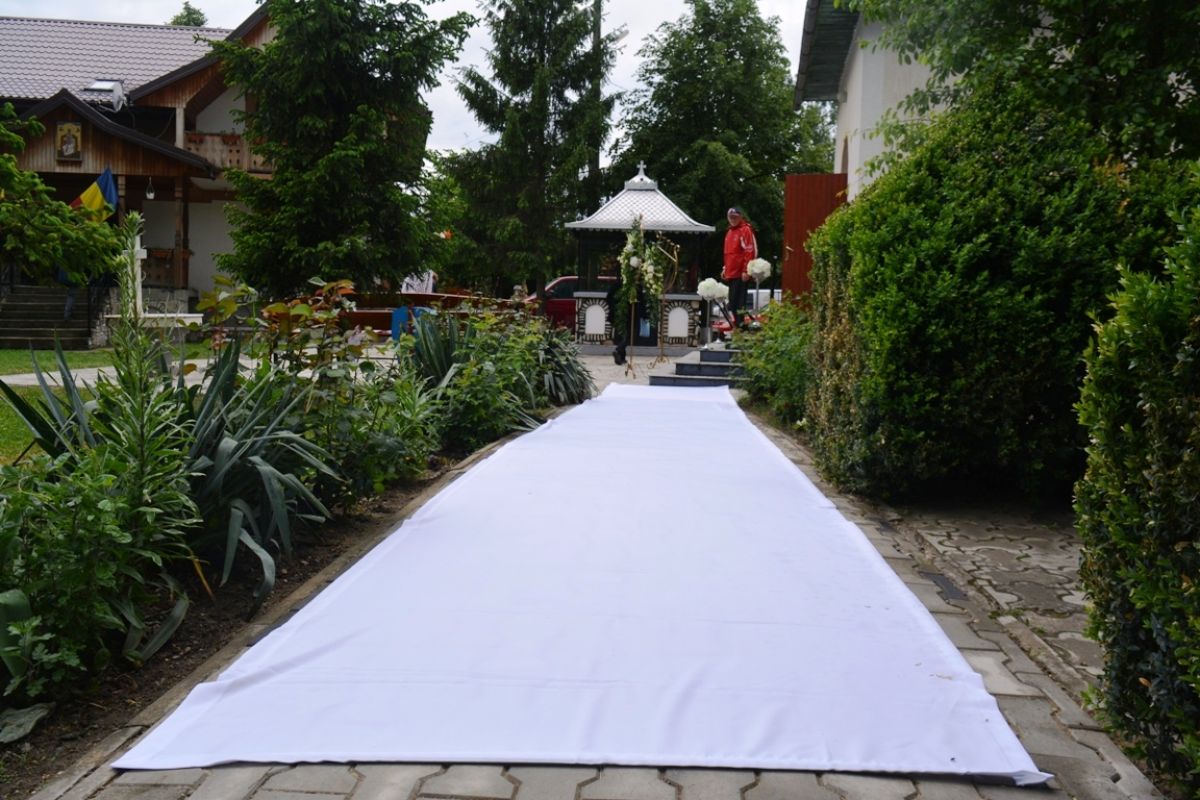 Aceștia au călcat pe mătase albă adusă de florăria ”La Belle Epoque”, care s-a ocupat și de aranjamentul floral pentru sala de petrecere.