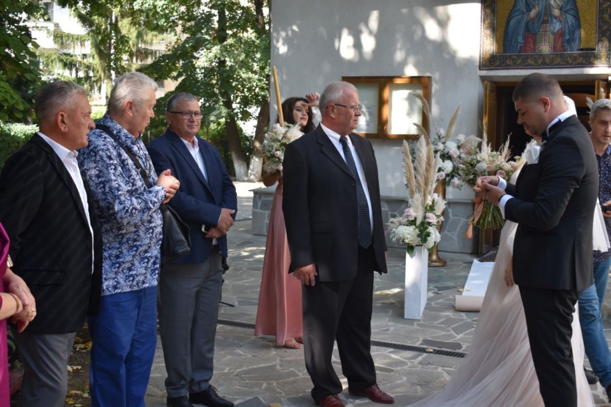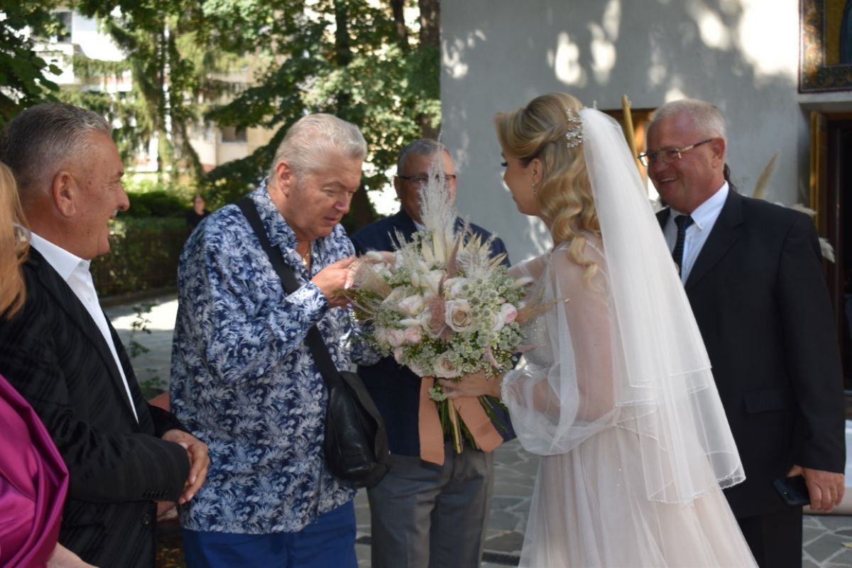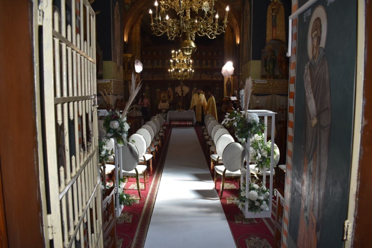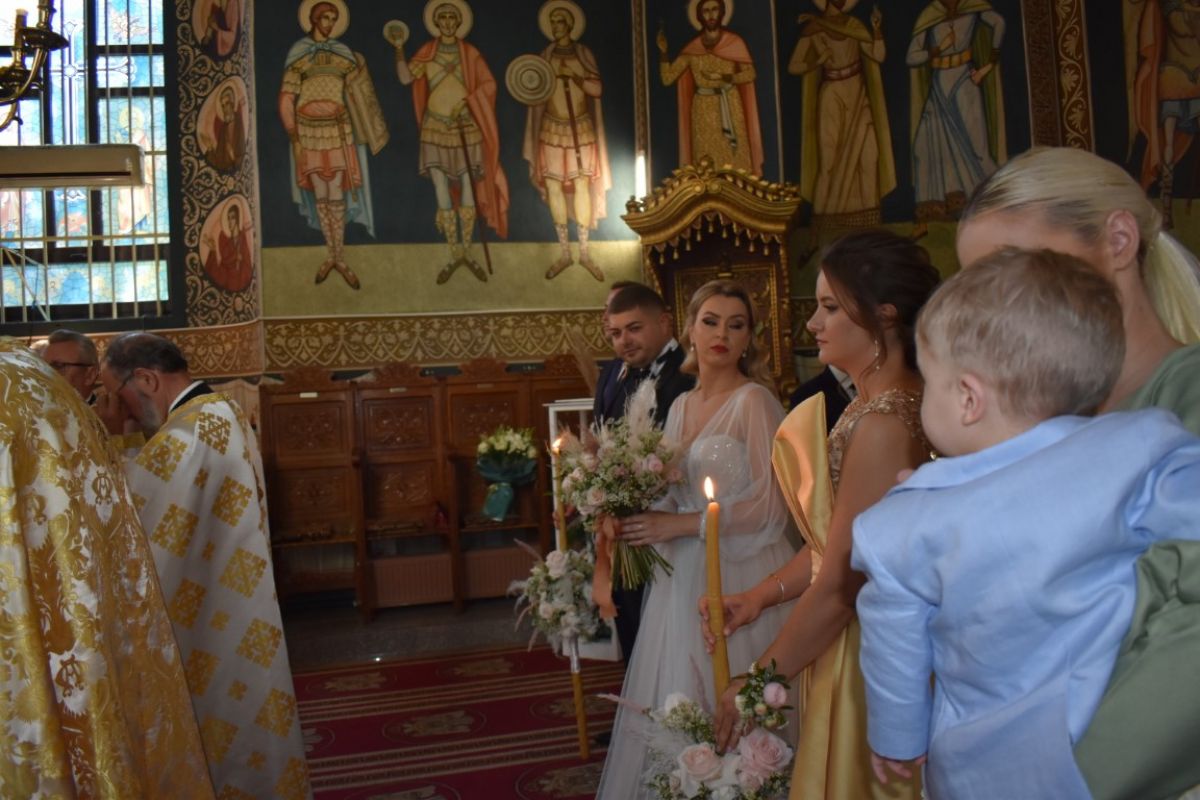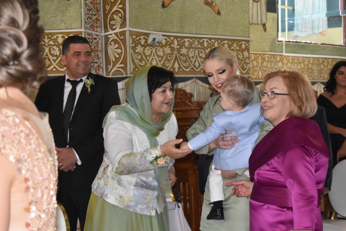 Ceremonialul religios în care cei doi uniți și în fața lui Dumnezeu a avut loc la Biserica "Sfânta Parascheva" de pe Pietonalul Unirii. Acolo au ajuns Ioana și Răzvan Barabaș, soțul ei, împreună cu nașii, Alexandru Rotaru, fost deputat PSD de Neamț, cu soția sa.