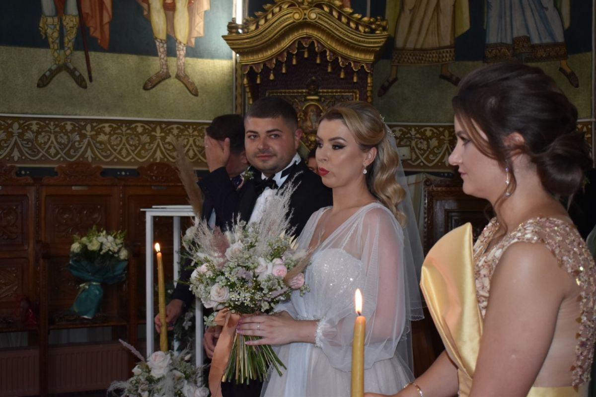 Mireasa a purtat o rochie creată de Dana Săvuică.