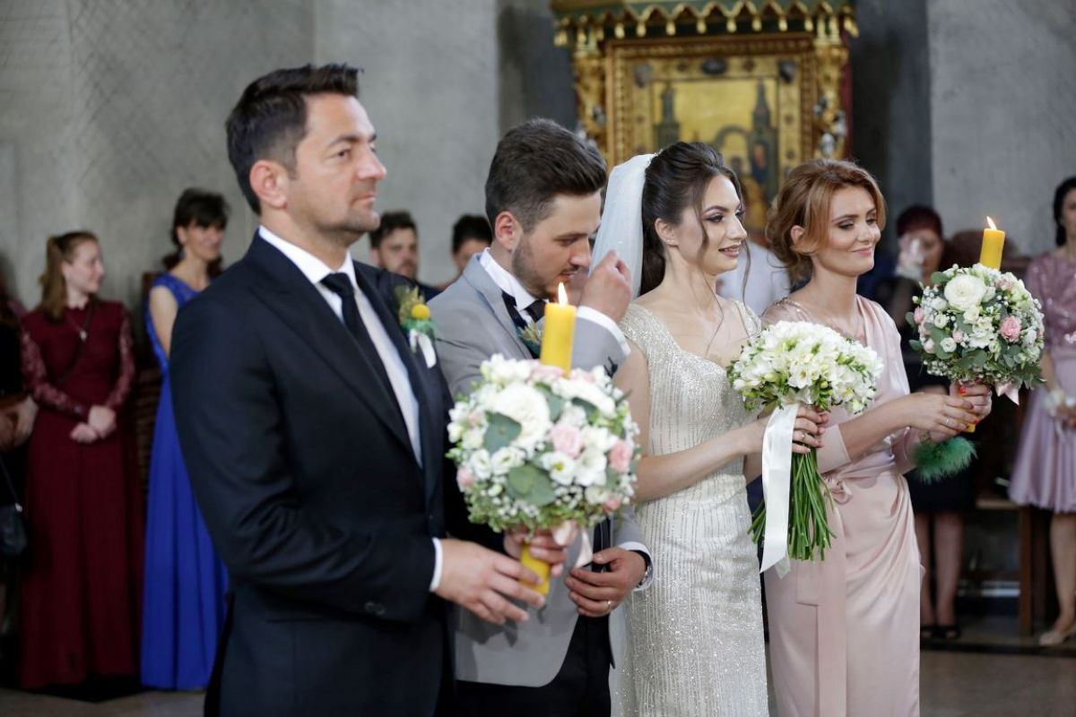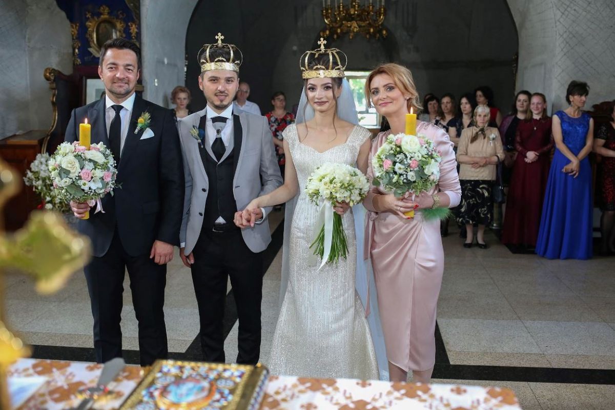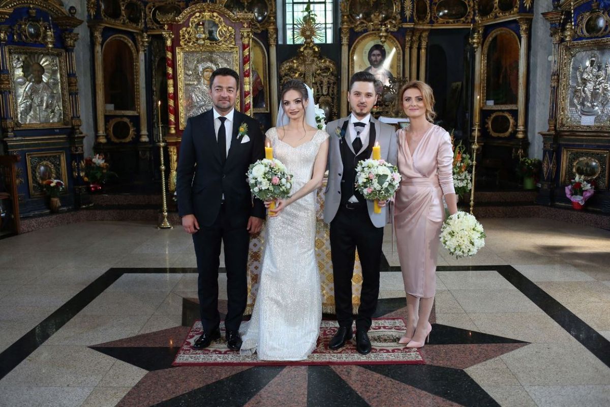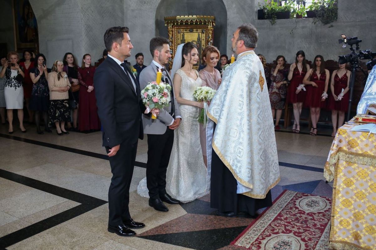 La 10:30 alaiul a fost la mire, la 11:00 la mireasă, pentru ca la ora 13:00 să aibă loc căsătoria religioasă la Biserica Vovidenia.