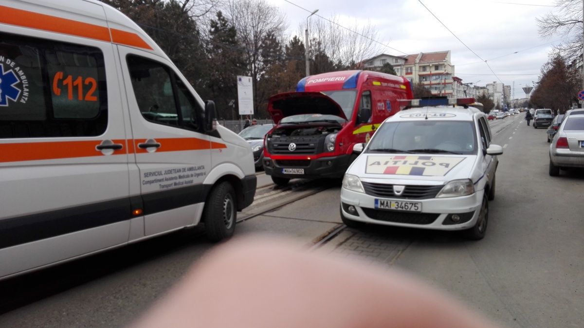 La doar aproximativ o sută de metri distanţă, în zona fast-food – urilor, o autospecială SMURD s-a izbit într-o Dacia Logan. Ambele maşini se deplasau spre „capătul lui 1”, iar medicul de pe SMURD susţine că automobilul din faţă a ieşit din coloană şi a făcut brusc la stânga, pentru a intra în parcarea de la magazinul Profi.