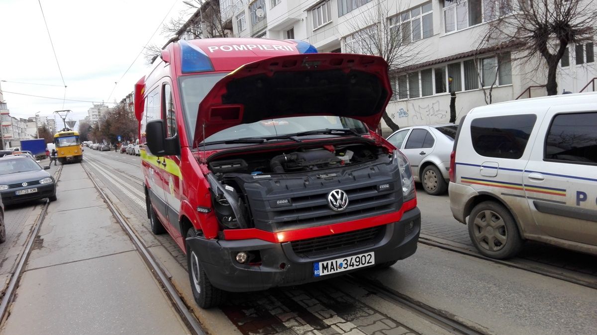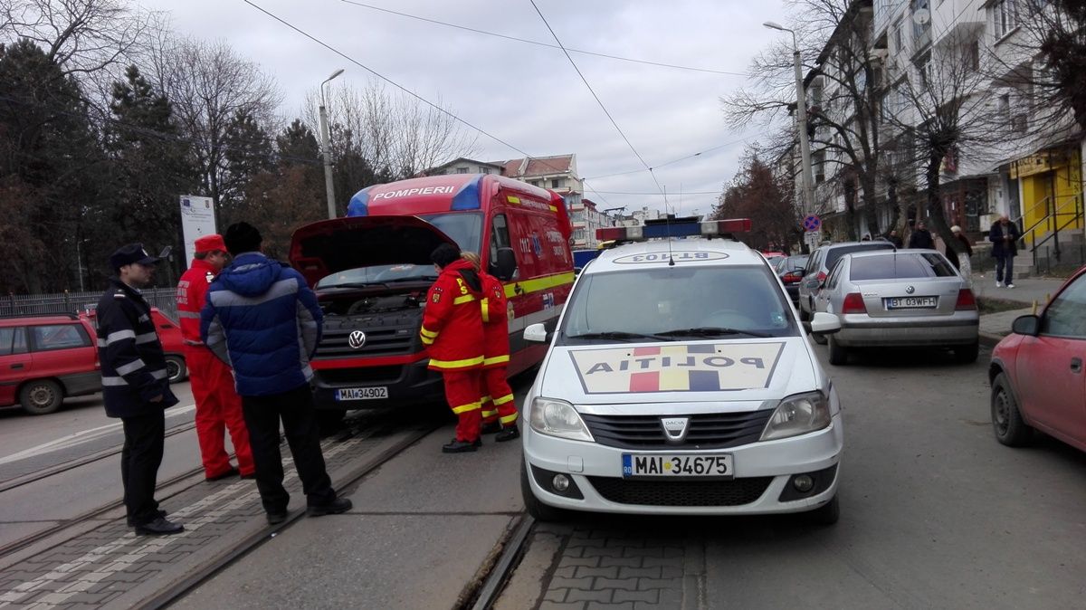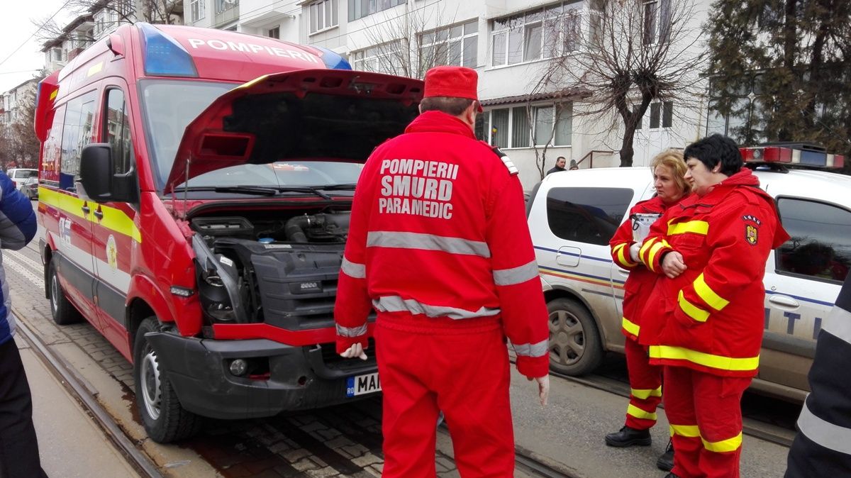Şoferul de pe SMURD a fost surprins de virajul autoturismului şi l-a izbit cu partea dreaptă faţă. SMURD-ul a mai mers aproximativ o sută de metri, după care s-a oprit.